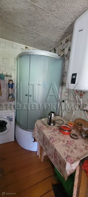 Дом состоит из 2 комнат, кухни, веранды. Отопление печное. Дом построен из бруса, утеплён и обшит. На участке есть колодец с питьевой водой – вода заведена в дом, так же сделан септик от душевой кабины. Фруктово-ягодные насаждения (яблони, кусты смороды, клубника), небольшая теплица, грядки, постройки необходимые для загородной жизни (сараи, туалет), беседка. В данный момент идёт газификация посёлка, заявка на подвод газа к участку подана. Возможно подключение оптоволоконного интернета. Электроэнергия 7 кВт.