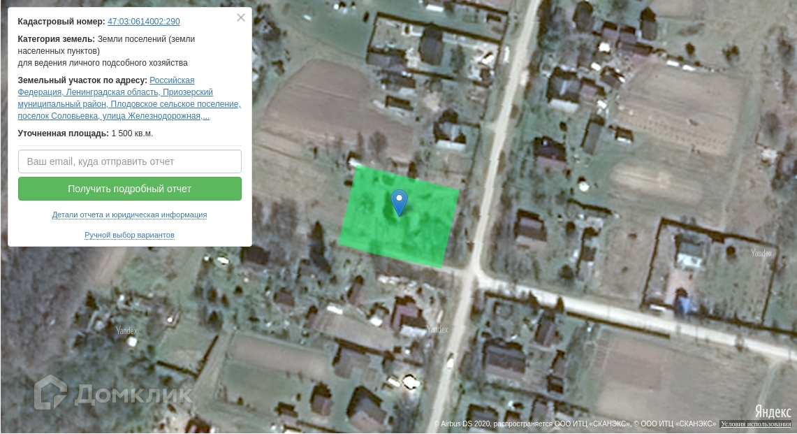 Расположен по адресу: Ленинградская область , Приозерский муниципальный район, сельское поселение Плодовское, поселок Соловьевка, ул. Железнодорожная, 19.