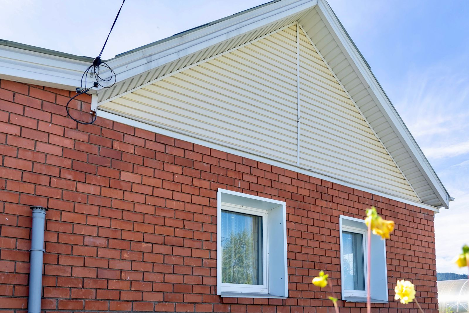 • Материал строительства: бревно (лиственница), обложен облицовочным кирпичом