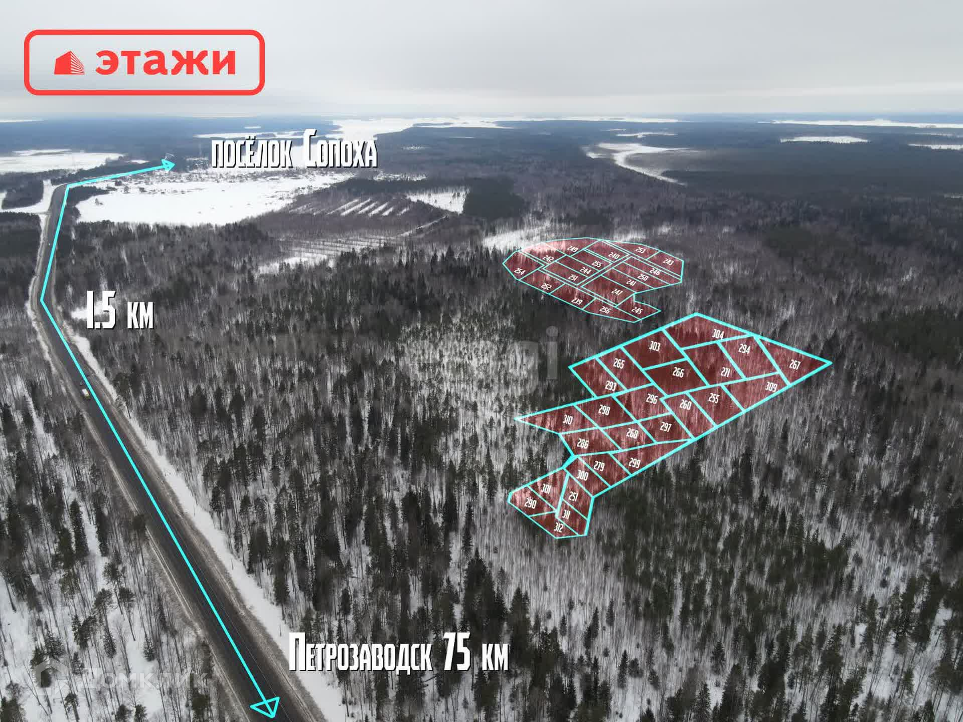 Федеральная Компания Этажи предлагает к покупке размежеванный участок ,расположенный недалеко от поселка Сопоха, рядом с рекой Сандалкой.