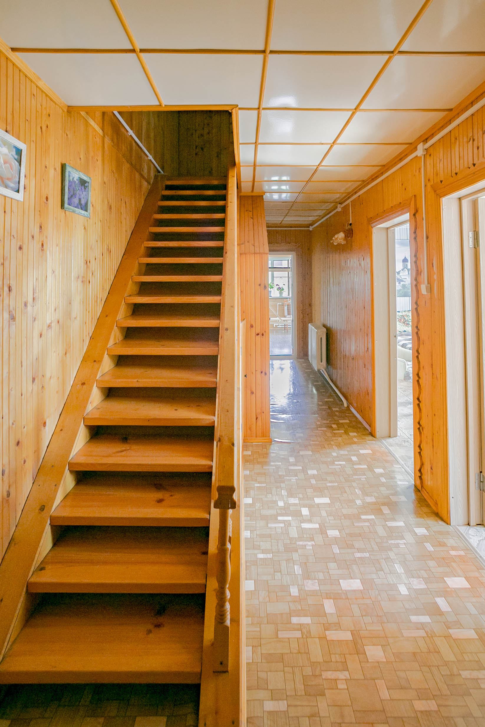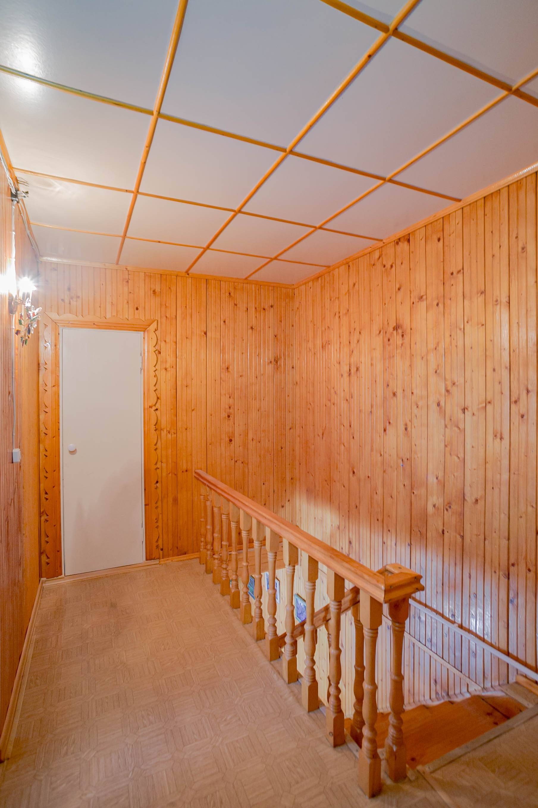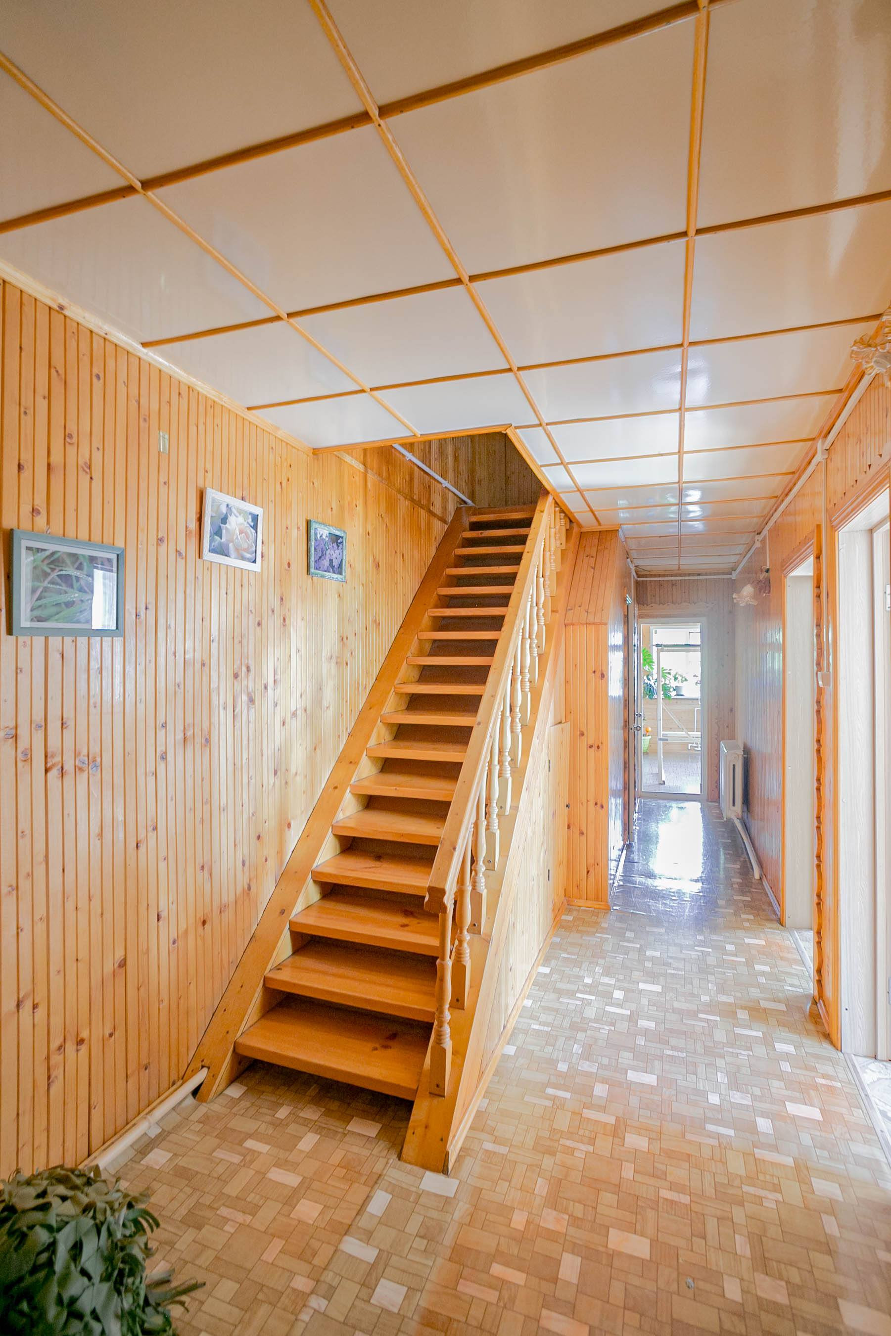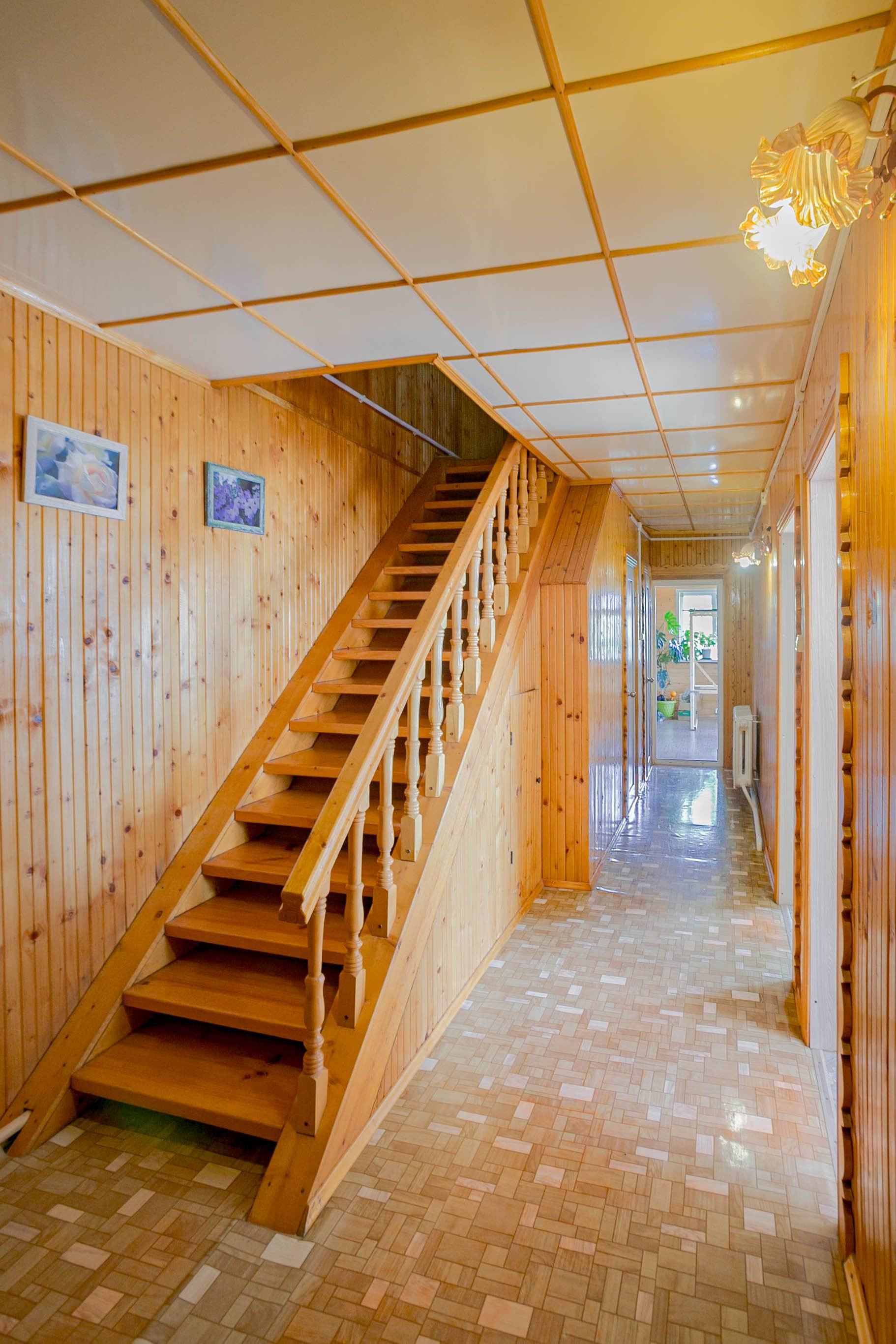 Отделка в доме: стены - дерево, пол- линолеум, дерево. Удобная, большая, деревянная  лестница на мансардный этаж.