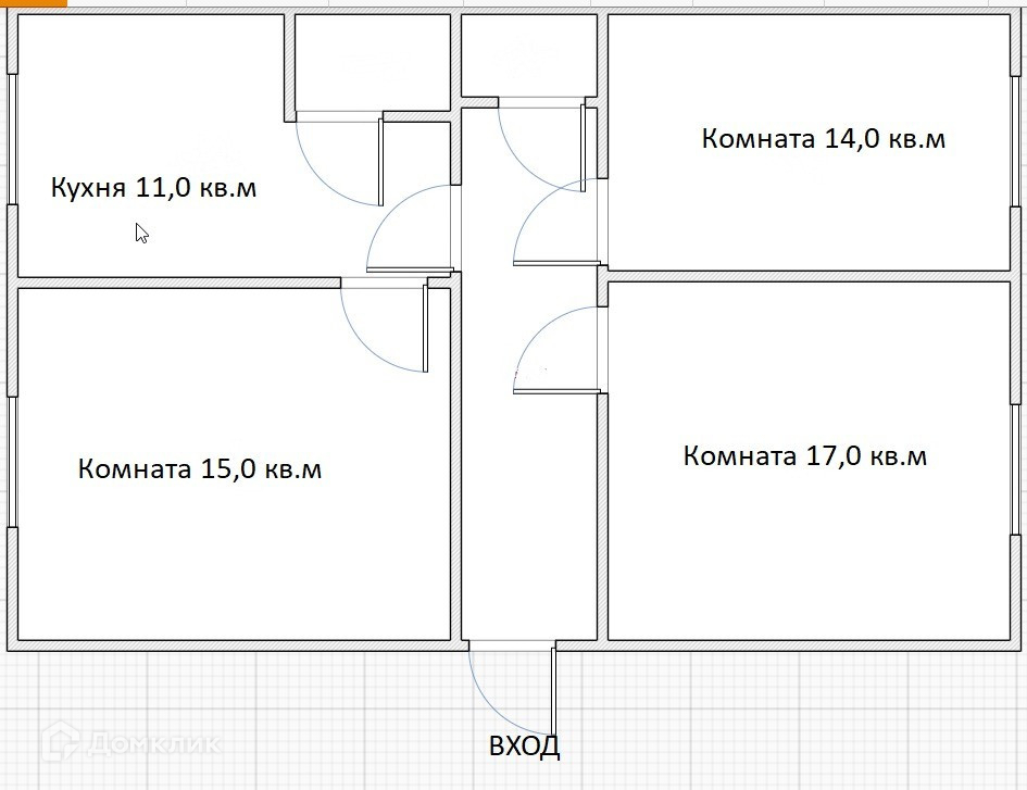 Площадь комнат - 14,0; 15,0 и 17,0 кв.м