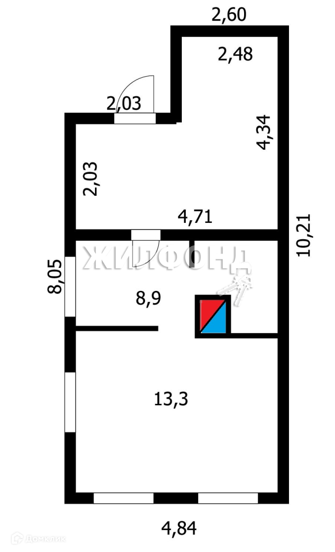 Общая площадь 22.8 м2