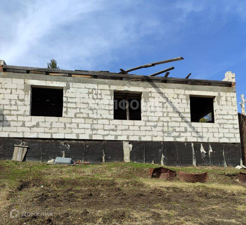 На большом участке недостроенный ДОМ - 104 кв.м. (есть проект), фундамент ленточный, материал-сибит. ГАЗ рядом с участком.