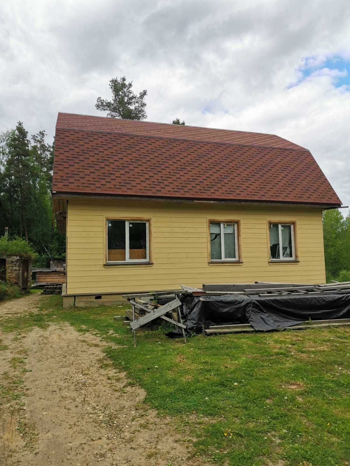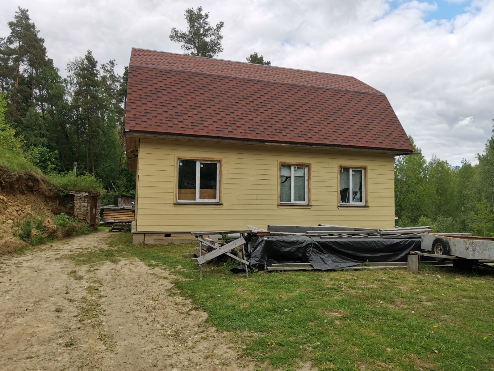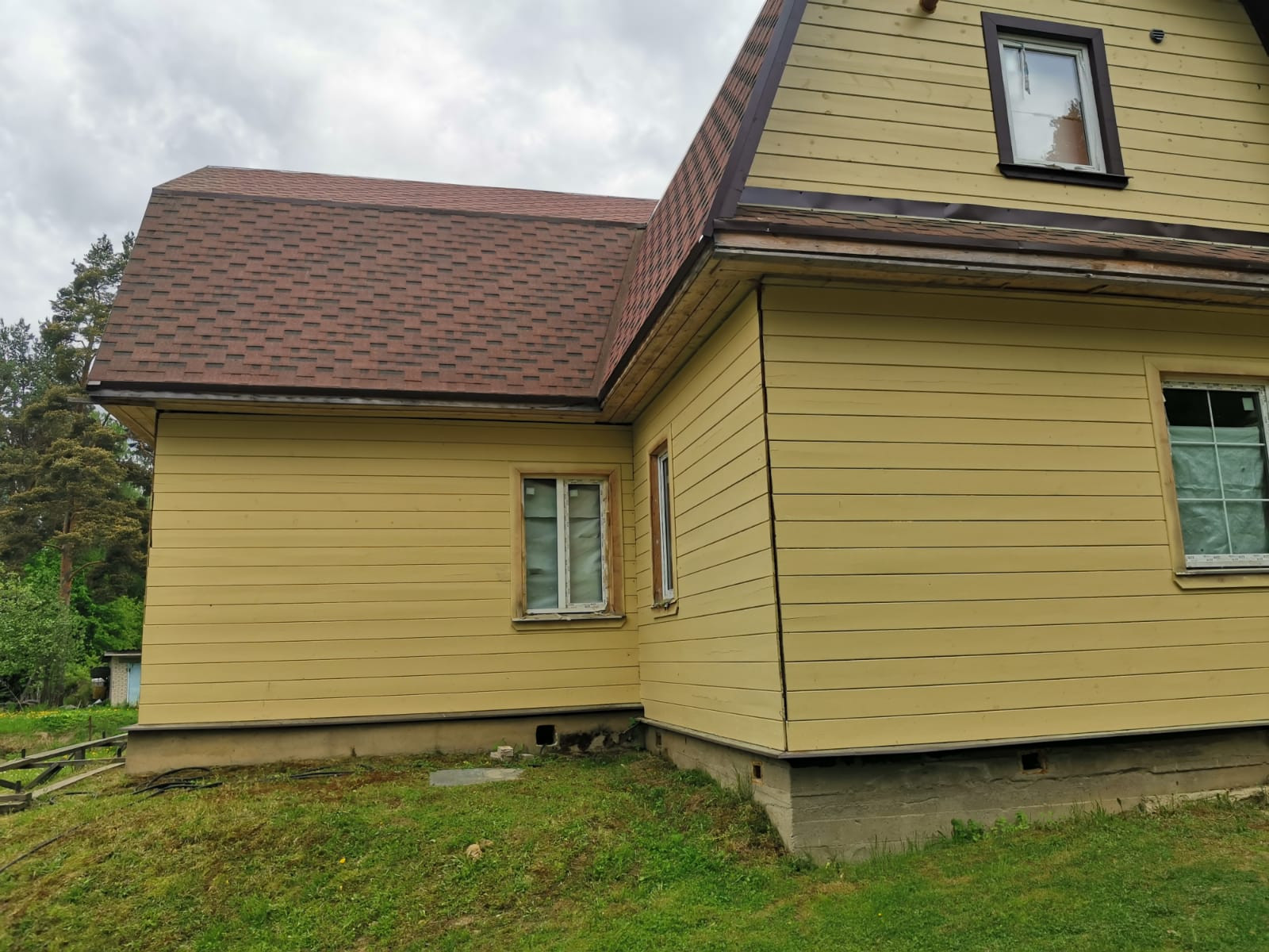 На данный момент в доме необходимо произвести финишную отделку, развести инженерные сети (разводка водопровода, отопление; материалы имеются). Водопровод и канализация заведены в дом. Отделка первого этажа - гипсокартон, на втором этаже выставлены направляющие маяки под имитатор бруса/вагонку. Электрика вся разведена.