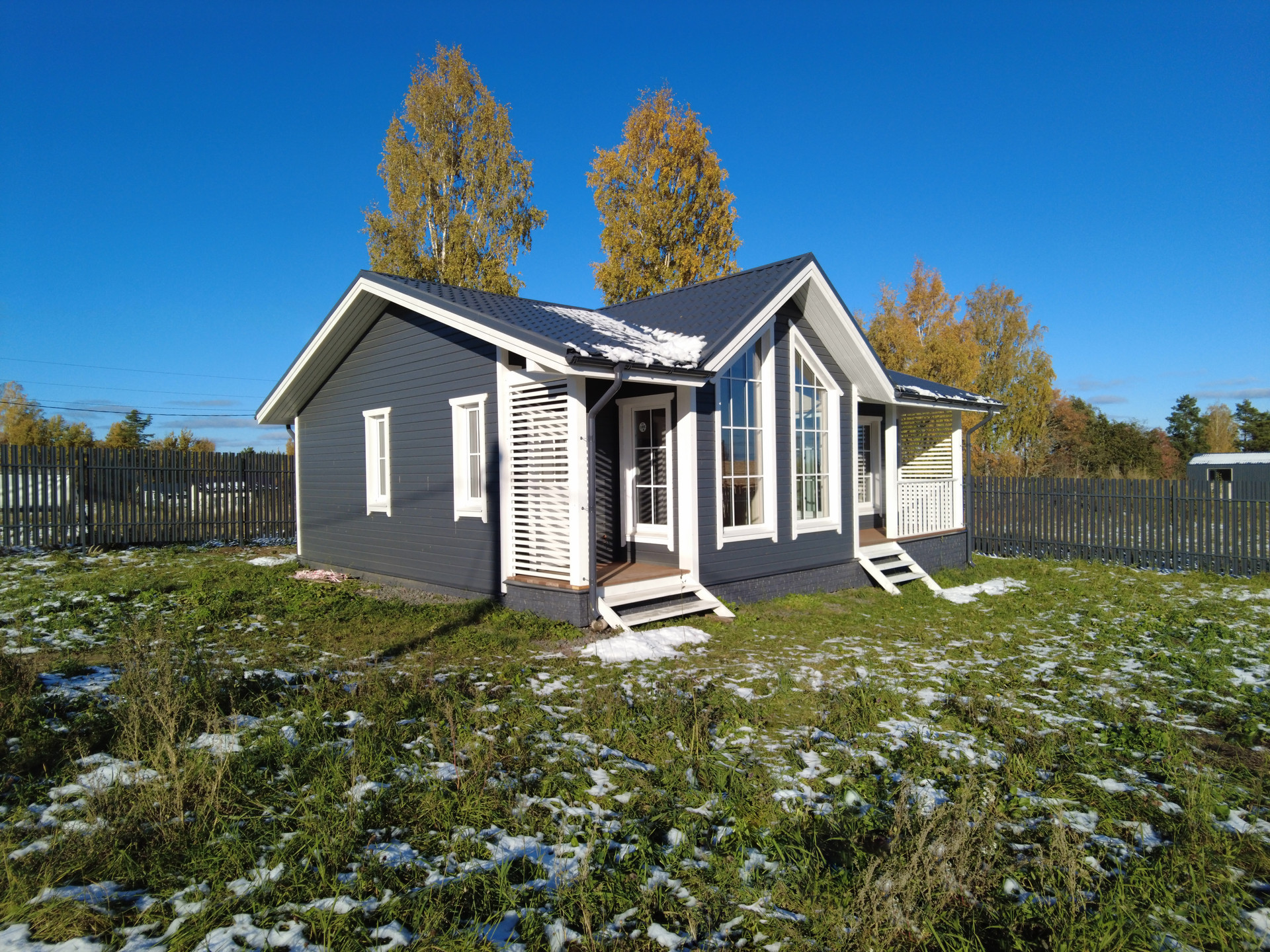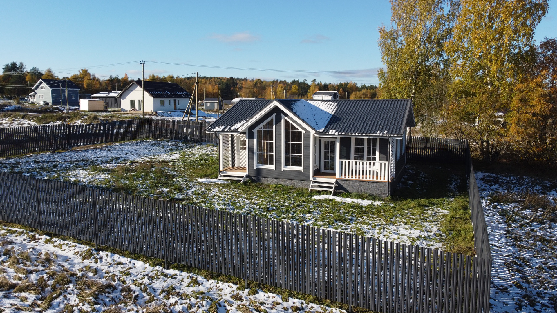 Площадь дома составляет 90 квадратных метров, включая просторную гостиную, уютную кухню, три спальни, ванную комнату и просторную террасу с потрясающим видом на окружающую природу. Площадь участка составляет 7,3 сотки.