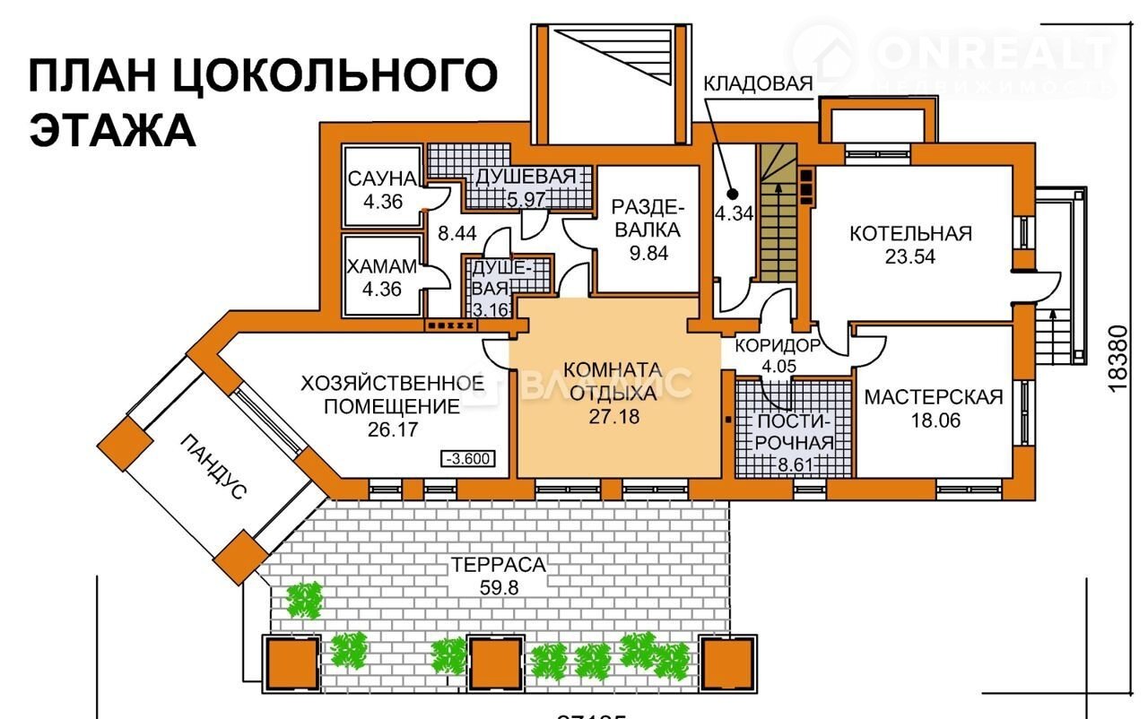 Из зоны отдыха выход на террасу, на которой можно разместить по желанию: бассейн (есть выводы под воду), зону отдыха, спорт-зал и т.д.).