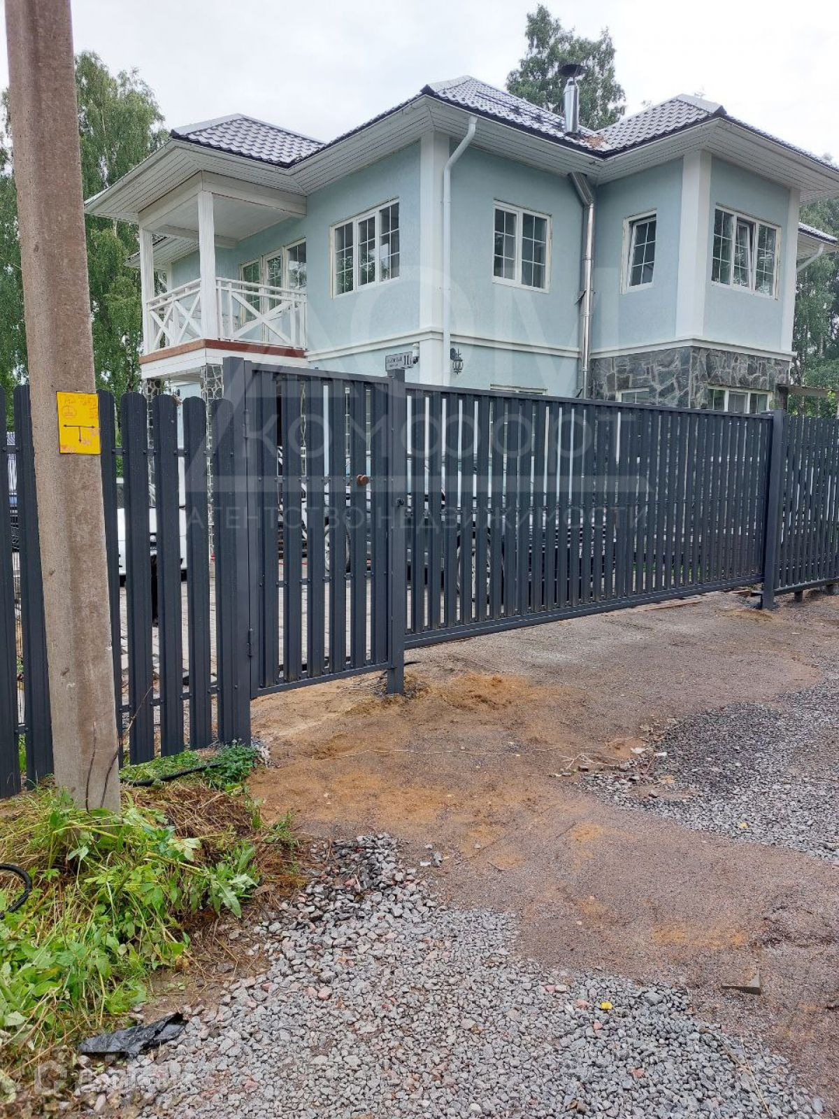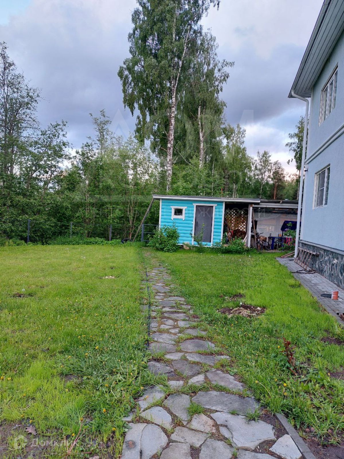 Участок 8.5 соток ухожен, сухой и ровный, огорожен забором с откатными воротами на электроприводе. Во дворе вымощены дорожки, зона для барбекю и площадка для двух авто, посажены плодовые кусты и деревья.