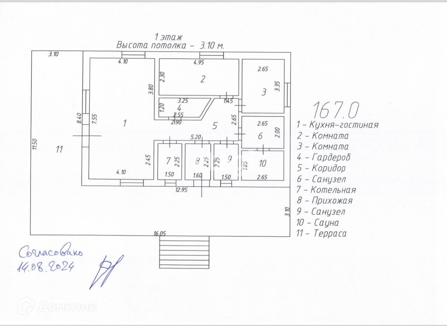 Общая площадь 167 м2