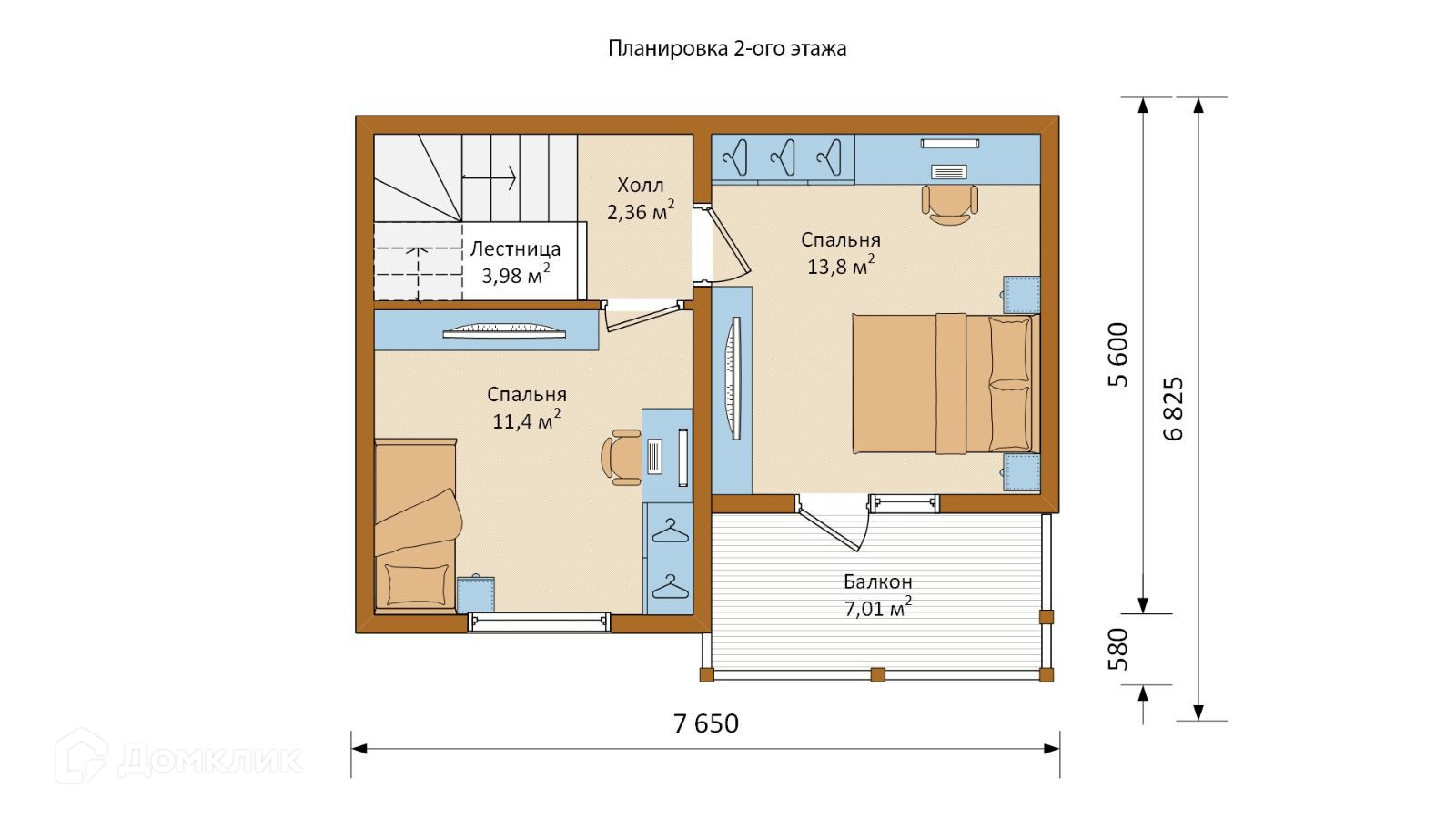 В доме 2 этажа, 3 спальни, уютная кухня-гостинная, балкон и терасса.