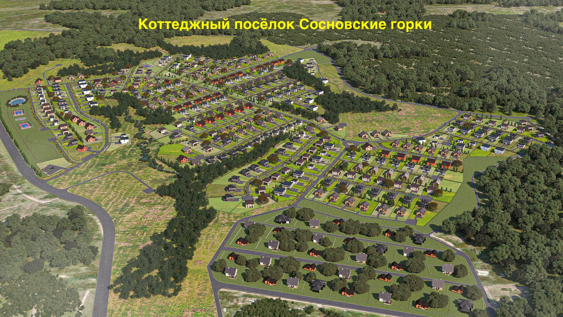 Название поселка «Сосновские горки» не случайно. Создатели концепции поселка постарались учесть в нем желание городской души оказаться на даче и слиться со сказочной красотой природы нашей Родины на Карельском перешейке, характеризующейся озерами, скалами, соснами и елями.