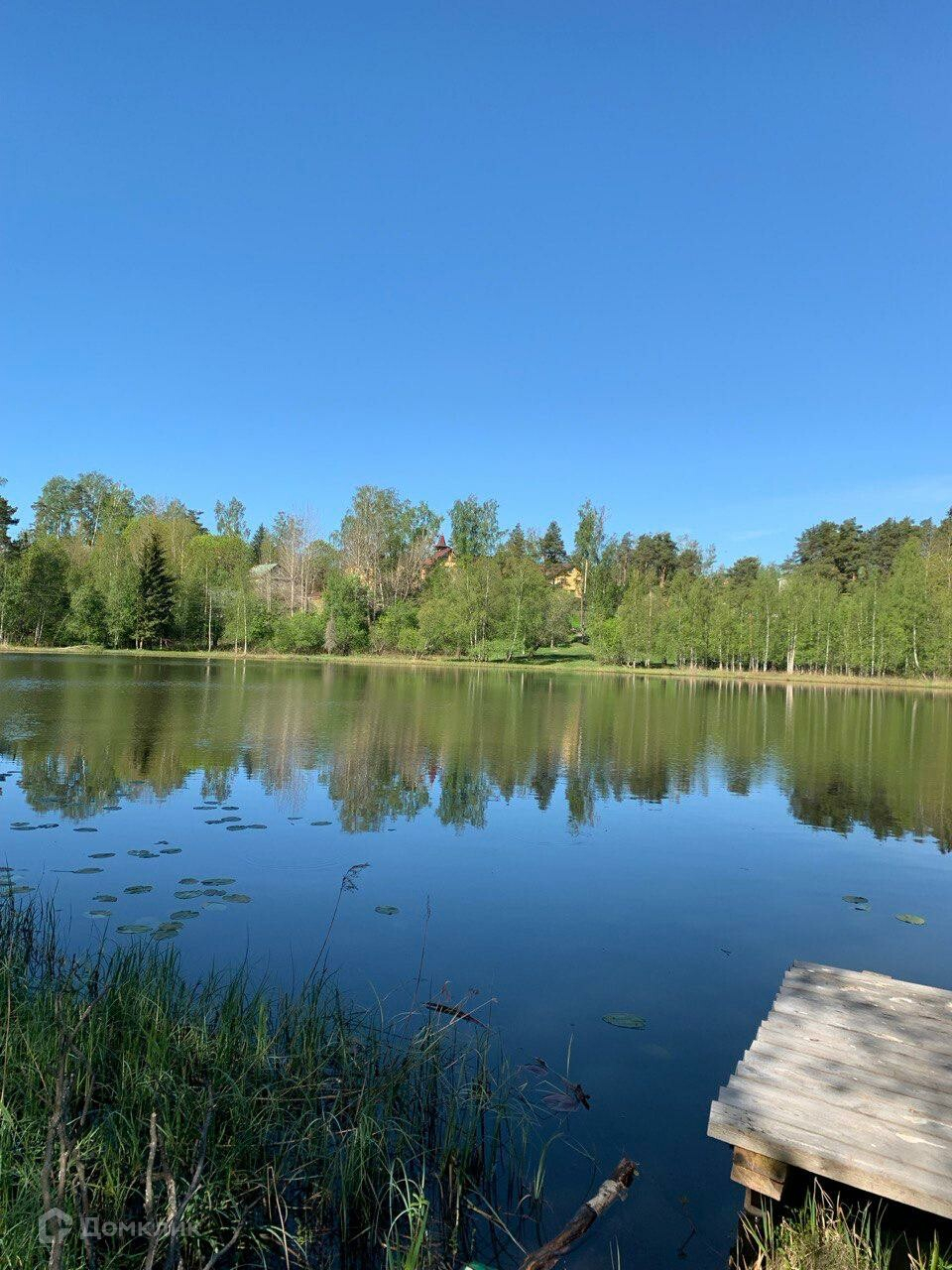 Участок с небольшим уклоном, сухой. Первая линия у озера. Идеальное месторасположение для уединенной жизни, недалеко от центра поселка Сосново.
