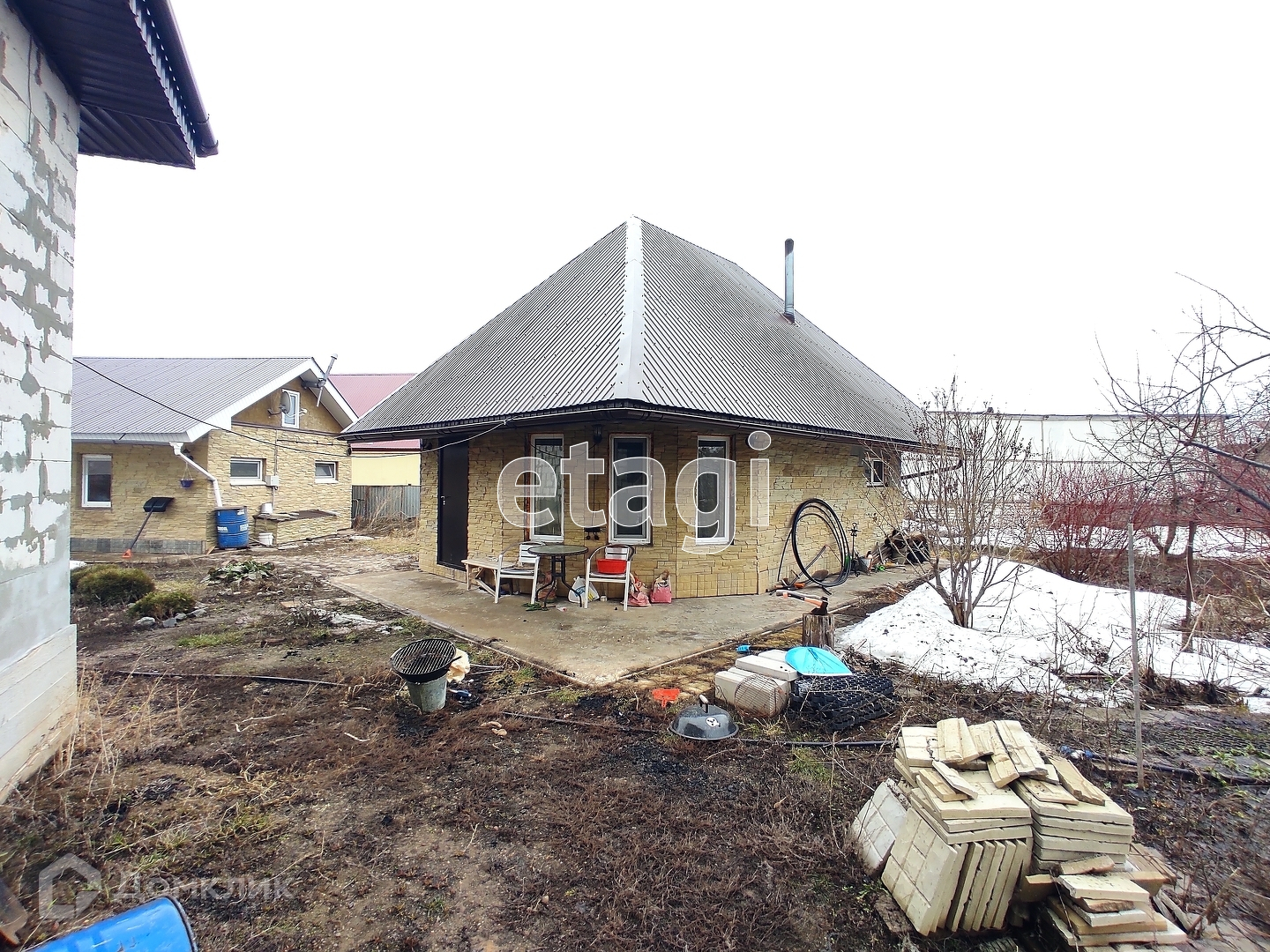 - Перед домом построен гараж 30 кв.м (оборудован торговыми стеллажами под магазин). Между гаражом и жилым домом - котельная. Гараж, котельная и жилой гостевой домик объединены общей крышей. Гостевой домик отапливается от котельной, гараж - от конвектора.