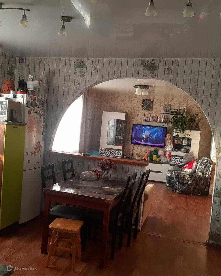 Большая кухня соединена с гостиной, вместительная прихожая. Санузел совмещен. Водоснабжение центральное. Отопление автономное, установлен электро и дровяной котлы.