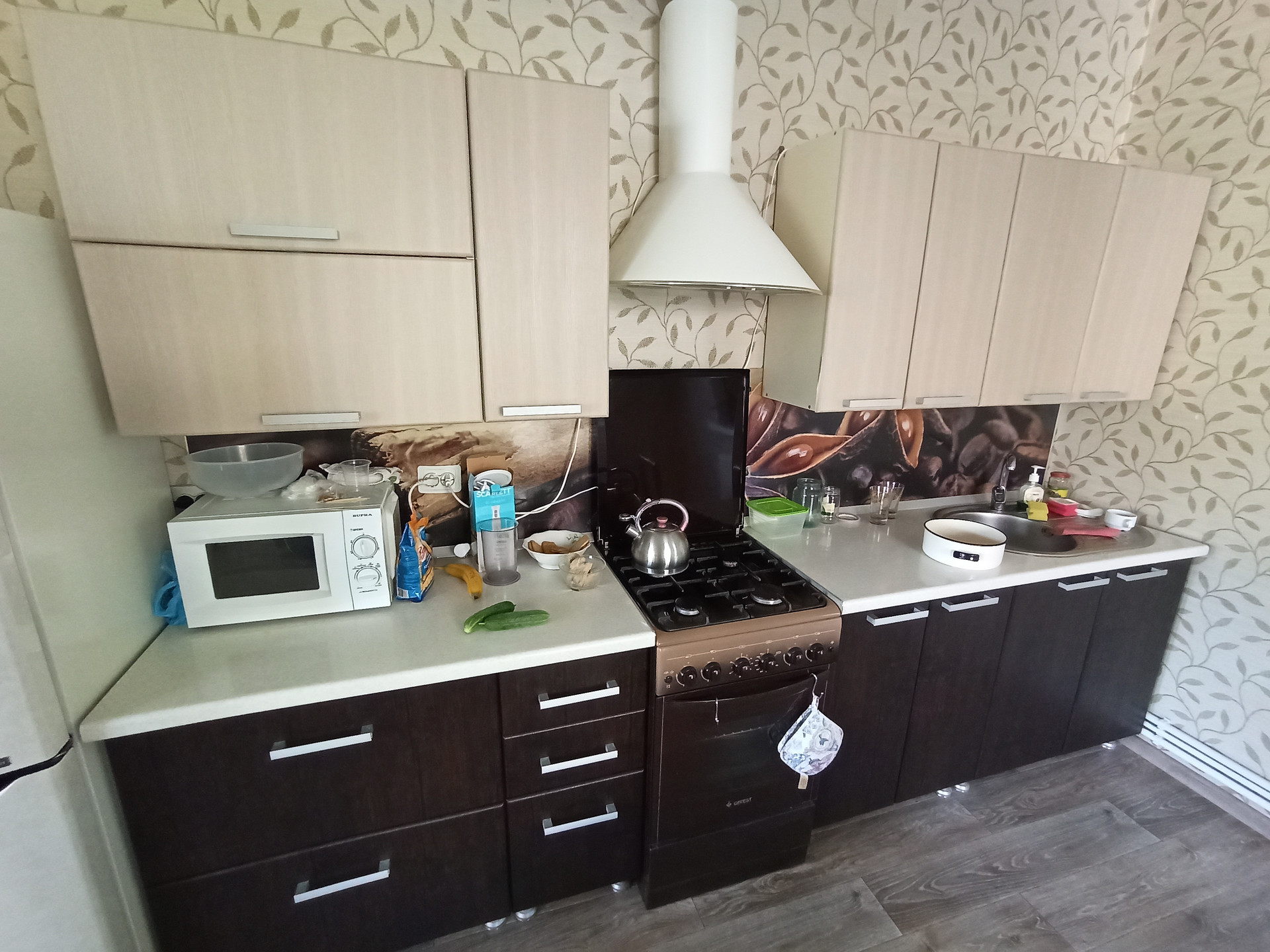 В доме остаётся вся крупная мебель и техника. Зимой в доме тепло (газовый котел), летом прохладно благодаря хорошему кондиционеру. Дополнительных вложений не требует, заезжай и живи.