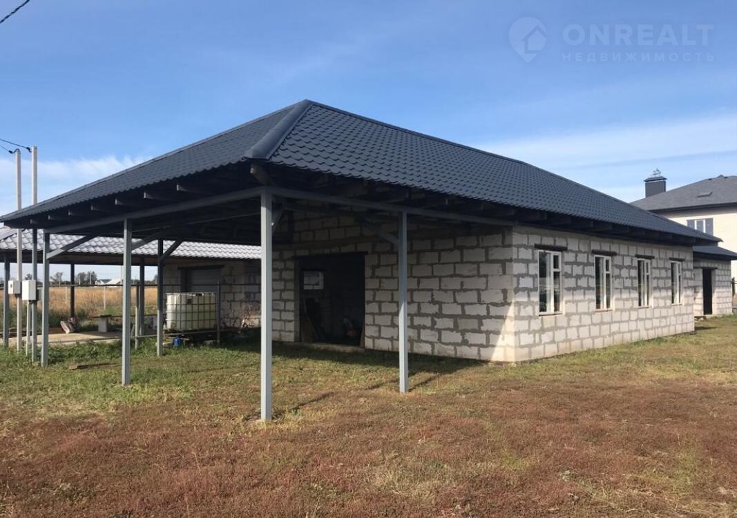 На участке цокольный этаж дома, гараж, хоз. постройка