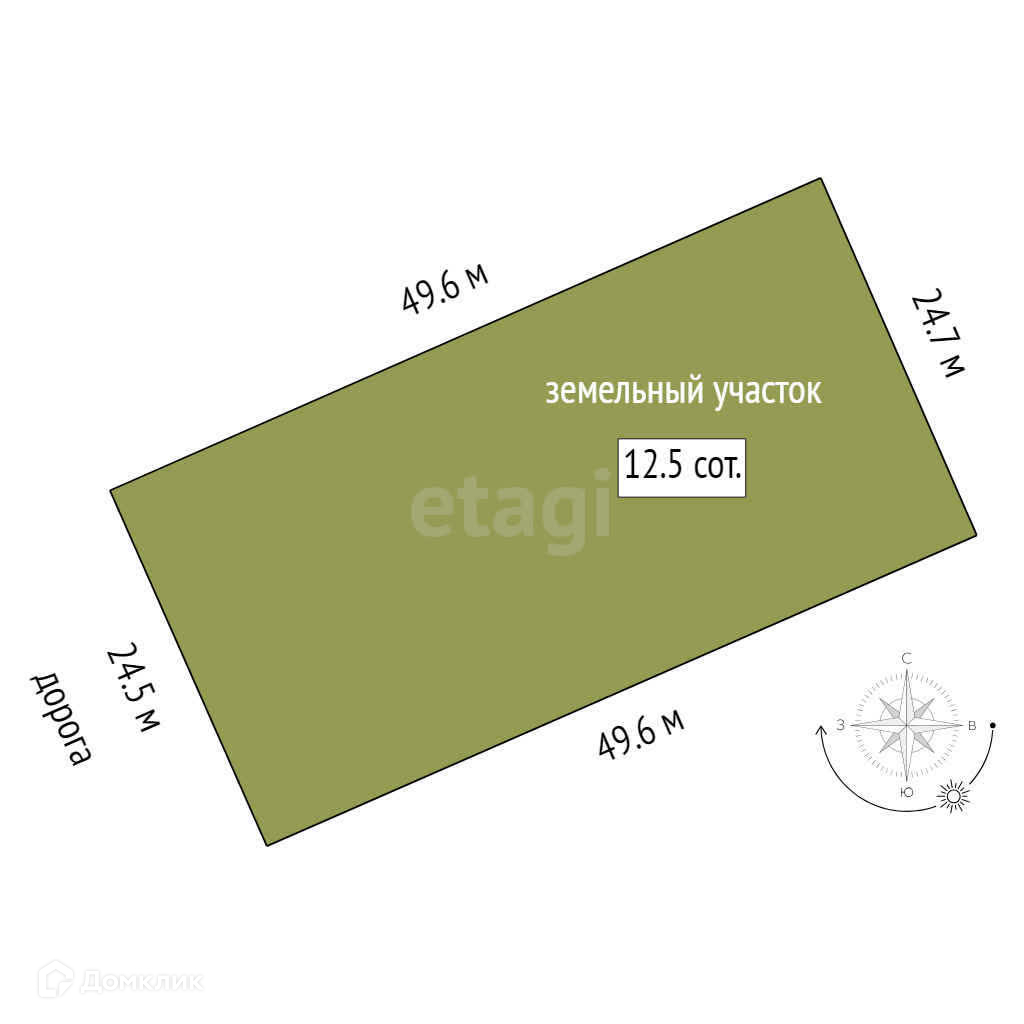 Площадь участка 12.5 сот.