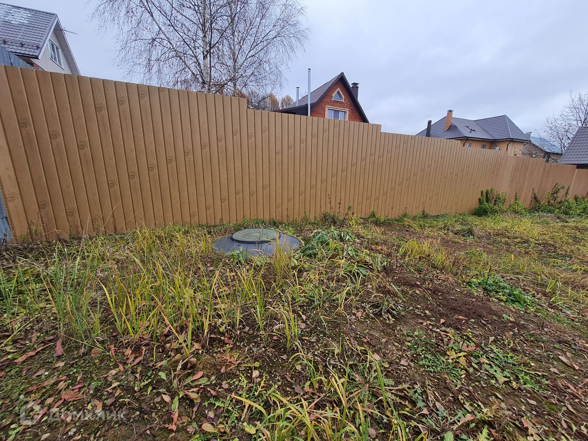 Участок огорожен со всех сторон, светлый, не закрыт соседями и растениями от солнца, благодаря чему всегда сухой и освещенный.