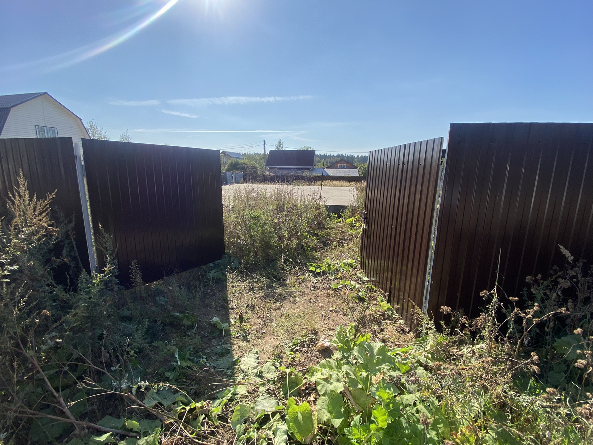 Садовая 25, участок ровный, с небольшим уклоном. Фундамент 10*10, свет 15 кВт, газ по границе.