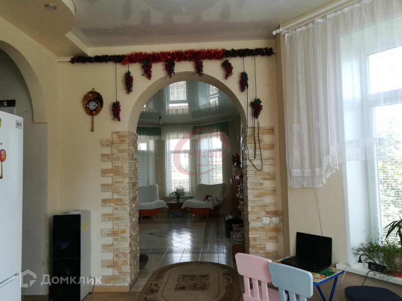 Красивый 2-х этажный дом с цокольным этажом. Дизайнерский ремонт. На первом этаже кухня, зал и спальня. Теплые полы. На кухне 17.4 кв.м. и в зале 28.1 кв.м. на полу плитка, в спальне 19.2 кв.м. ламинат. На втором этаже 3 спальни 15.6; 18.4 и 29 кв.м.  2 балкона, на полу ламинат. Санузлы на каждом этаже. Действующий камин. Гараж, навес под машину, бассейн во дворе, баня, ухоженный участок. Все коммуникации, асфальт до дома