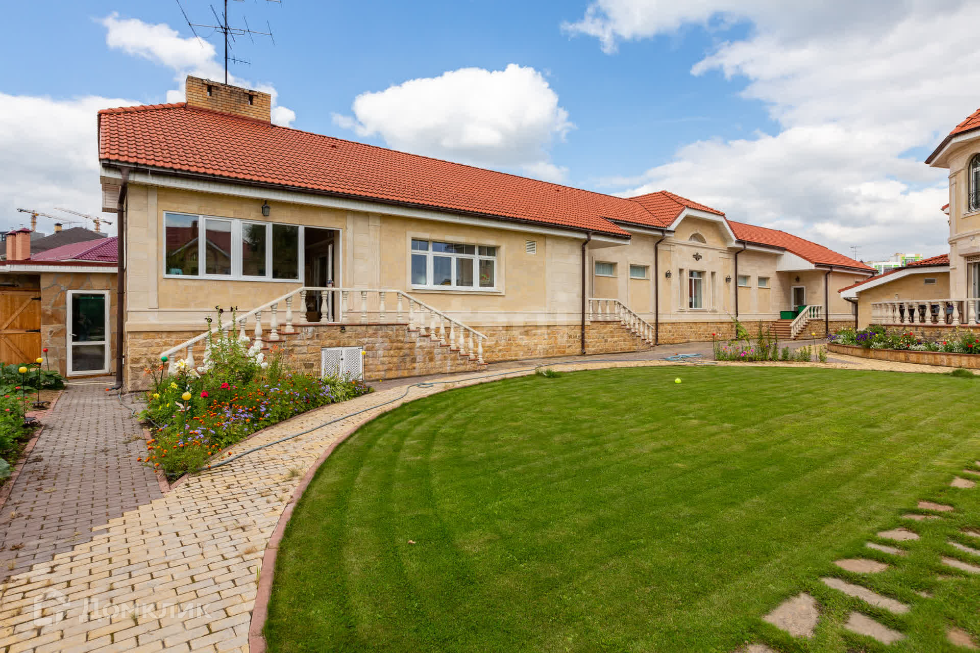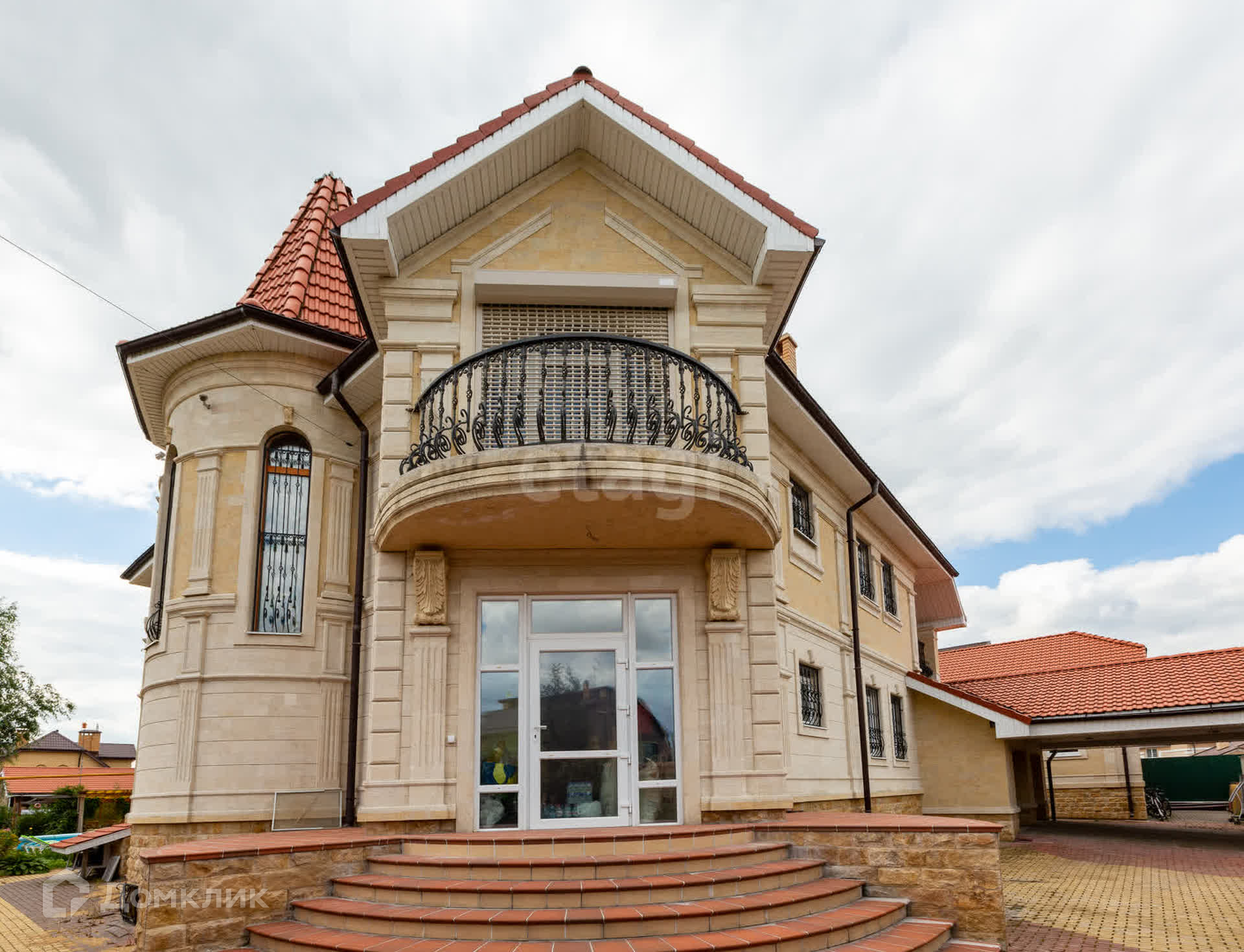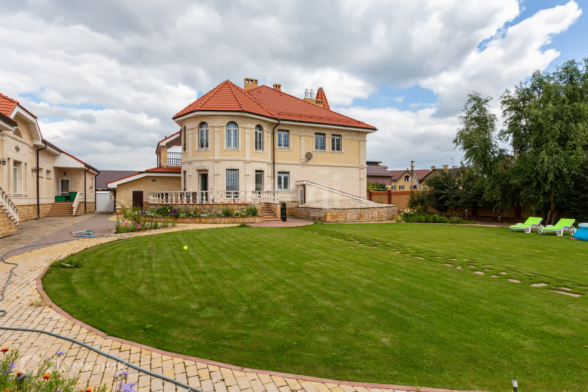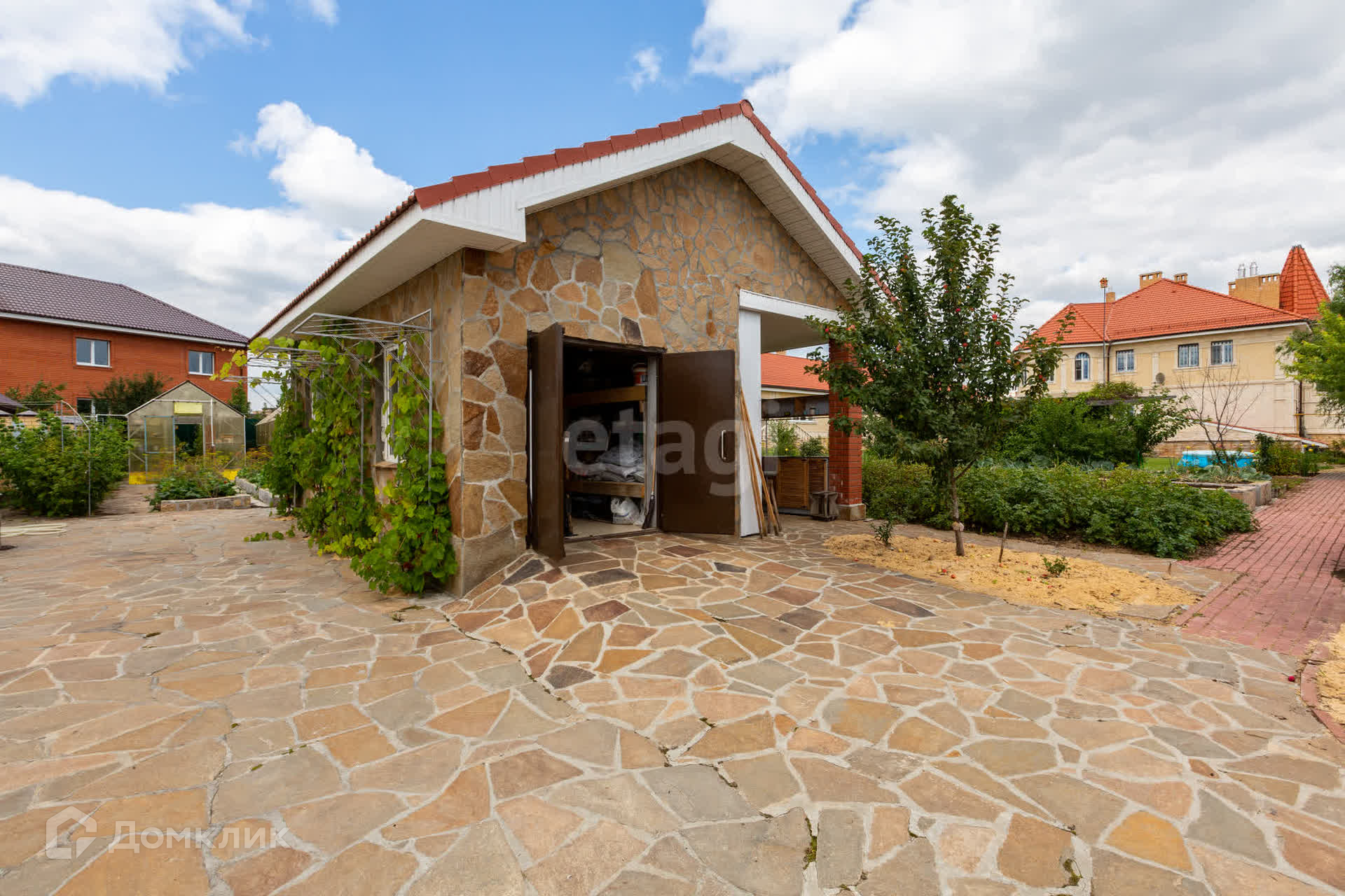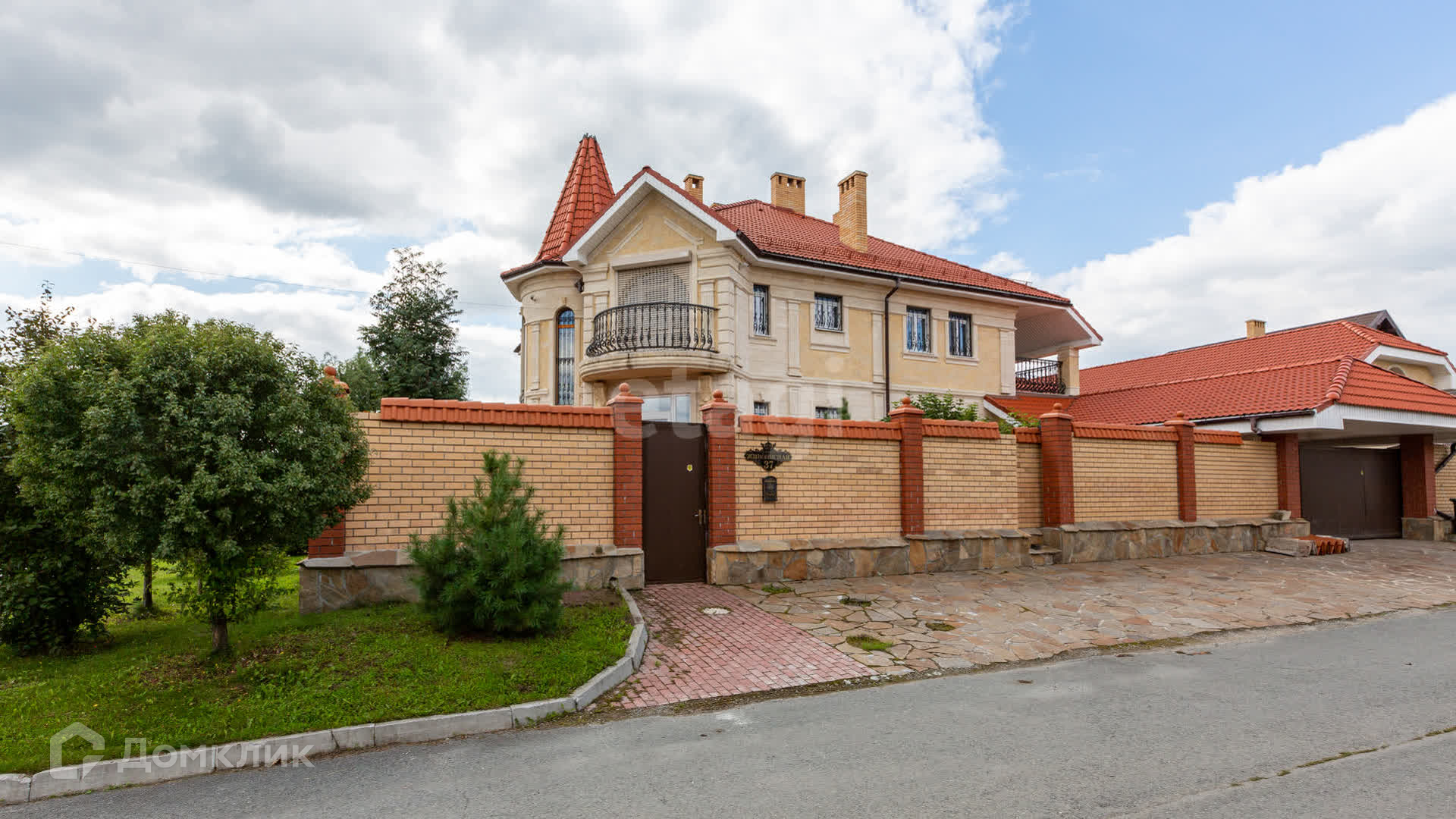 Расскажу о самом коттедже: дом построен из кирпича и обшит камнем.