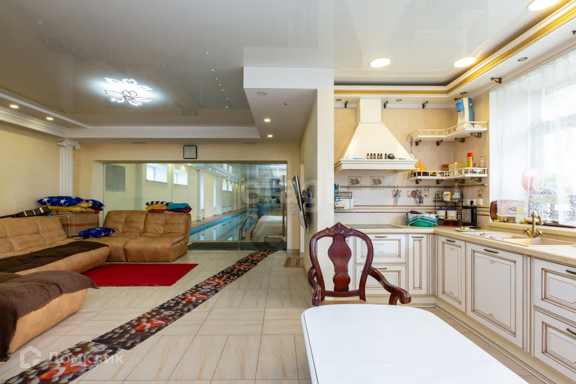 Венец всего поместья - отдельное здание с бассейном на 25 метров! Кроме бассейна, в самом здании есть летняя кухня с многофункциональной печью, кухонная зона, зона отдыха, солярий, а также баня с купелью, которая сохранят свой жар до 24 часов!