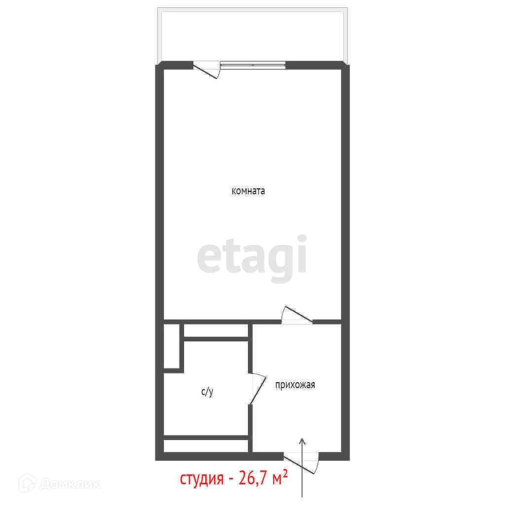 Общая площадь 26.7 м2