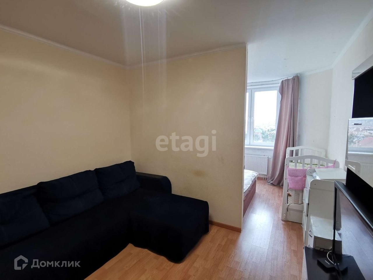 В одной из комнат выполнено зонирование на спальню и гостиную, установлена перегородка из гипсокартона (возможен демонтаж при необходимости).