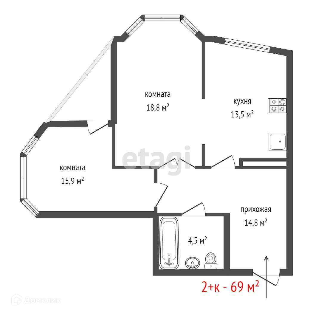 Общая площадь 69 м2