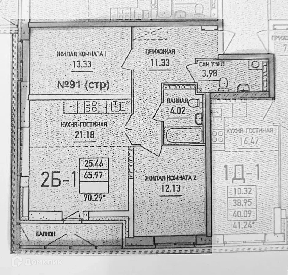 Балкон, лоджия 1 лоджия