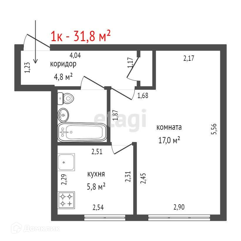 Общая площадь 31.8 м2