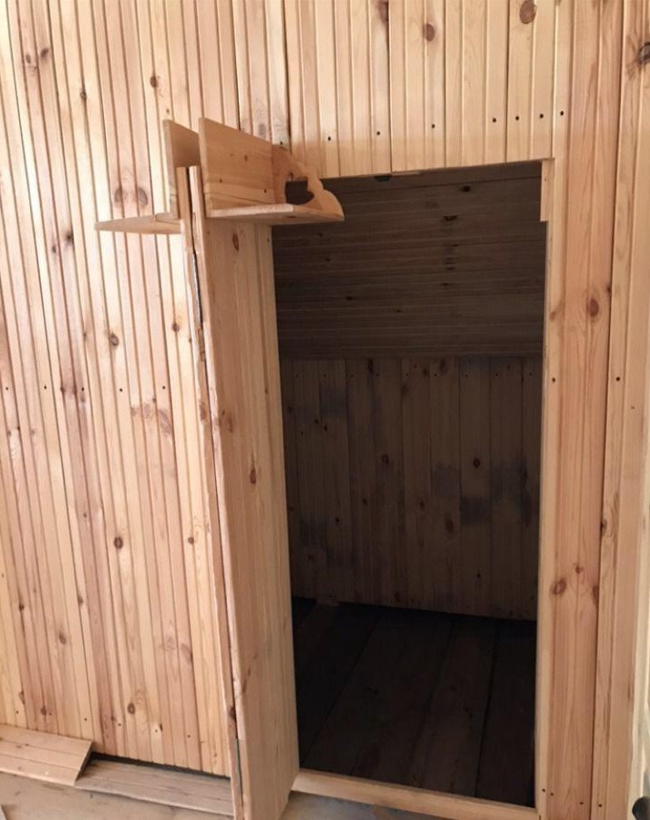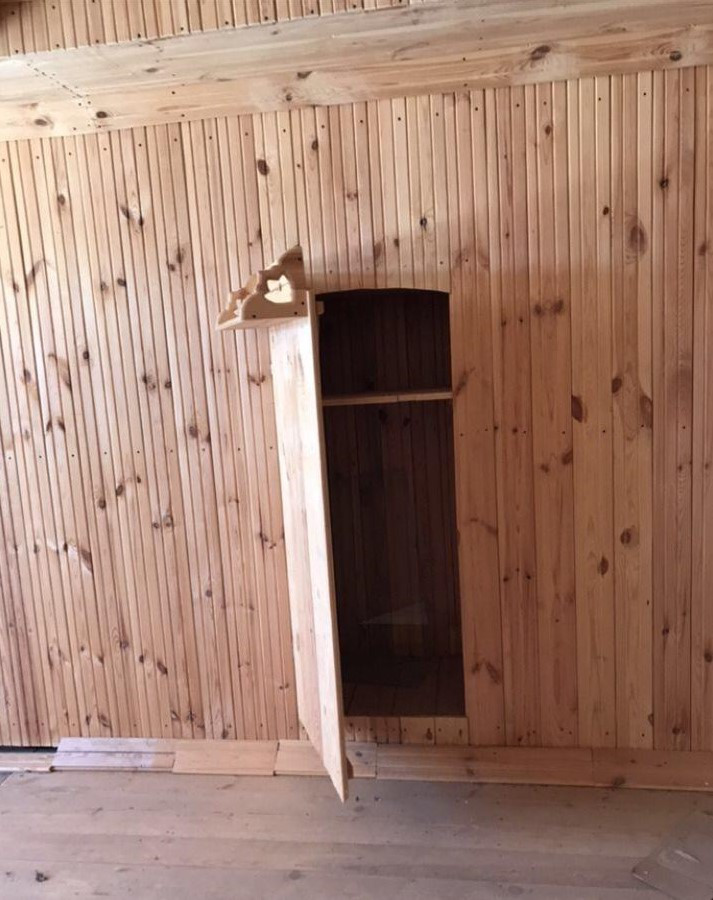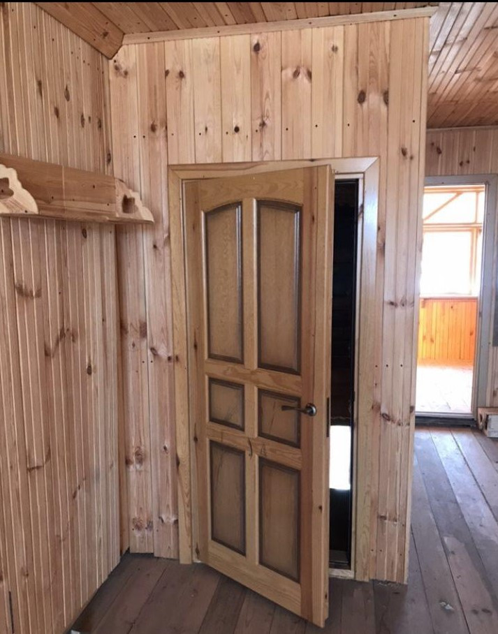 На втором этаже есть гардеробная, шкафы под библиотеку, просторное помещение полностью отделано вагонкой, балкон застеклён, утеплён.