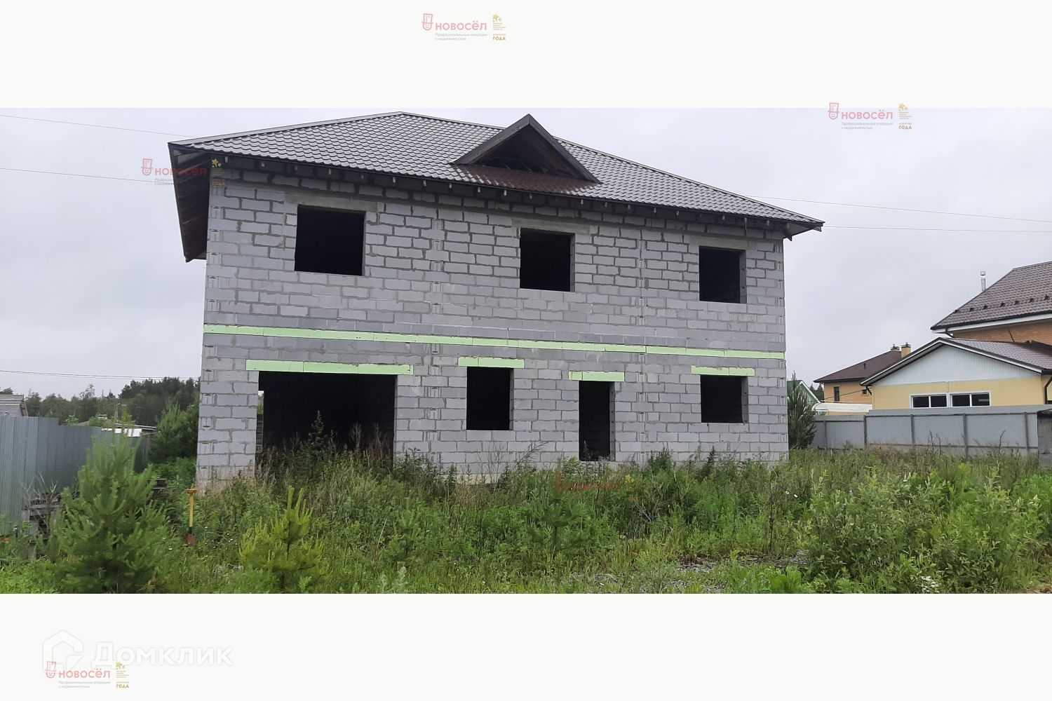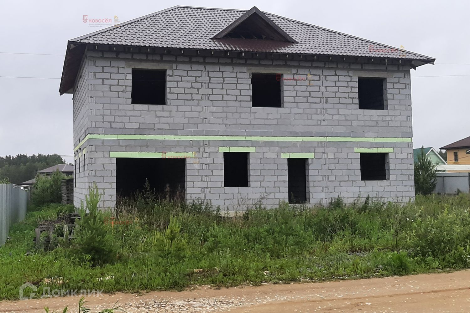 Объект № 162088. Продажа коттеджа в поселке Становлянка. Готовность дома коробка под крышу. На участке стоит сруб для бани на фундаменте. Скважина с чистой питьевой водой. Гараж  построен в основном здании с входом в дом.