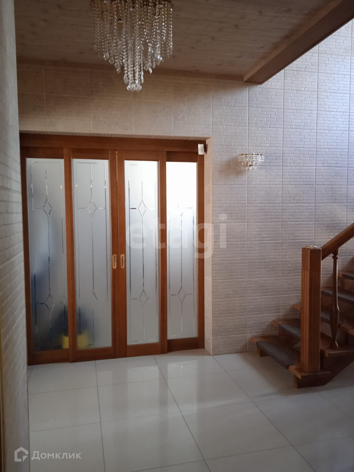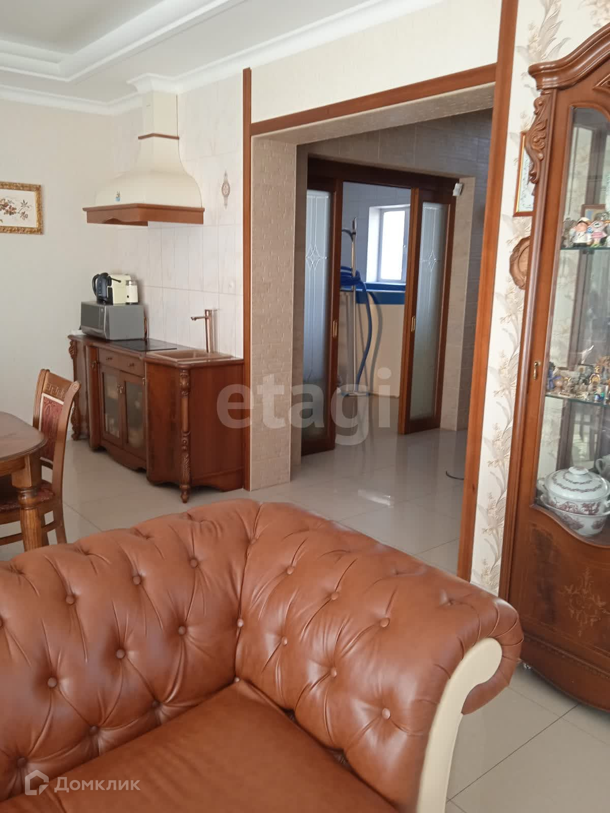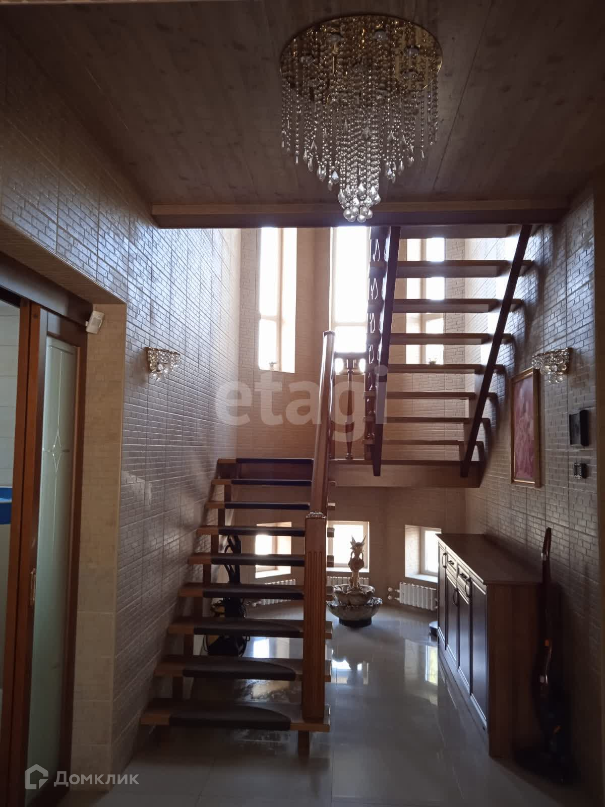На первом этаже расположена просторная кухня-гостиная площадью 42 м² с керамогранитным полом. Также на этом этаже есть баня и сауна с теплым бассейном. Второй этаж состоит из 4-х комнат,с паркетным полом . Площадь двух этажей составаляет 195 м² .Так же возвели третий этаж, оборудовали профессиональным бильярдом и спортивным мини залом с тренажерами и прекрасной комнатой отдыха. Все комнаты и помещения оснащены кондиционерами.На первом и втором этажах по два санузла.