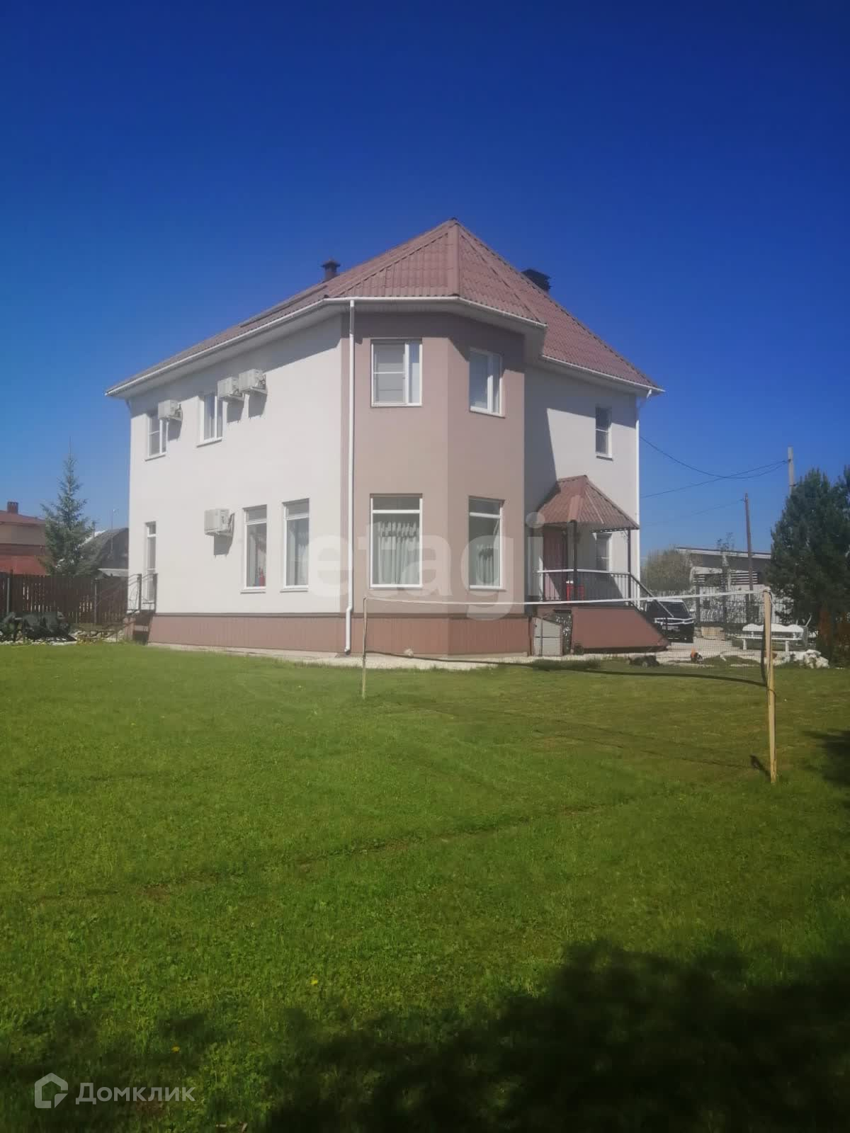 Благодаря панорамному остеклению, в доме очень много естественного света. Отопление осуществляется как газовым, так и электрическим способами. Забор выполнен из металла. На участке установлена скважина глубиной 40 метров. Крыша дома выполнена из крептофлекса.На территории двора имеется спортивная площадка и мангальная зона. Площадь всего коттеджа, вместе с третьим этажом, составляет 270 м².