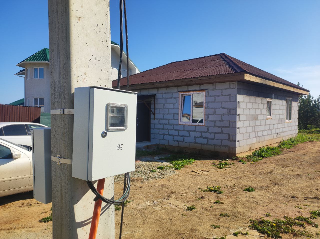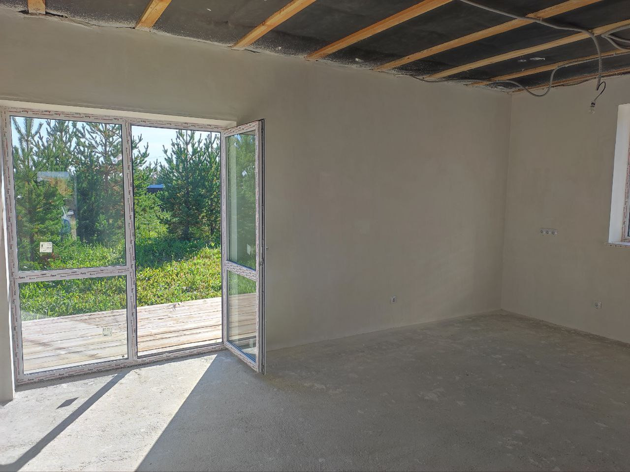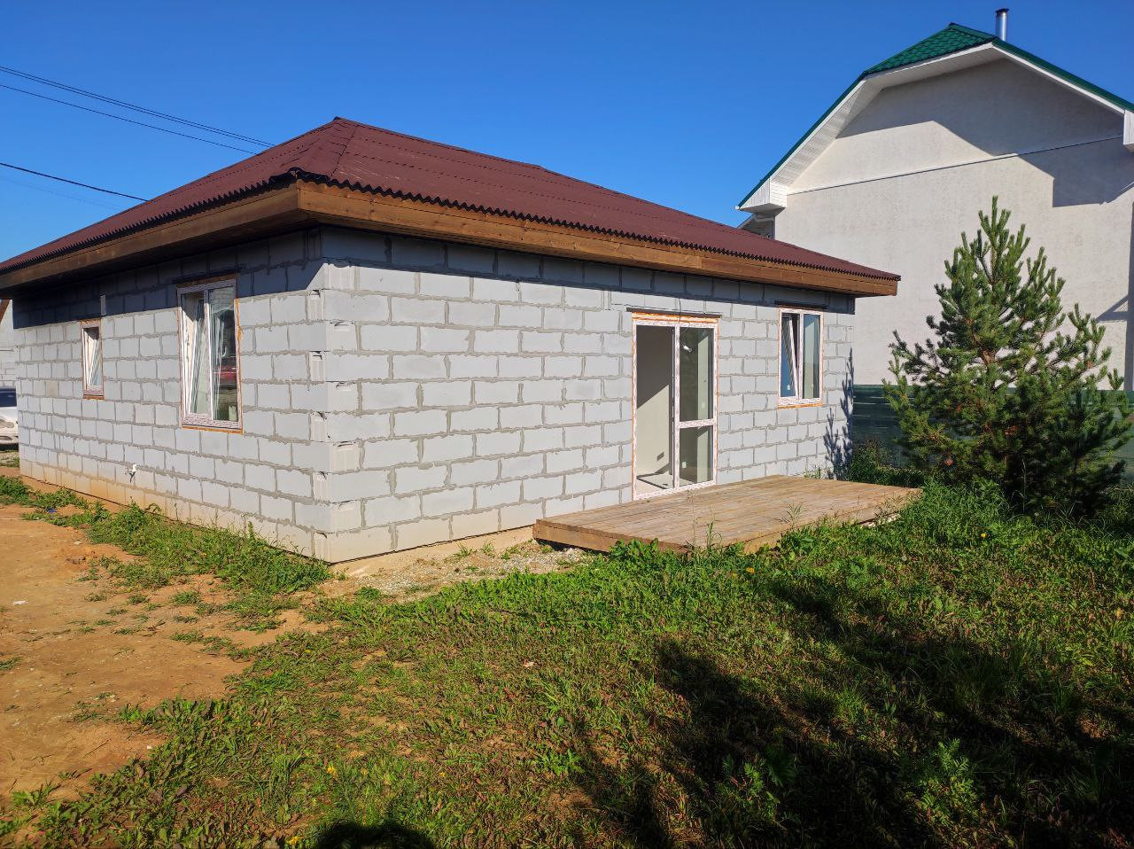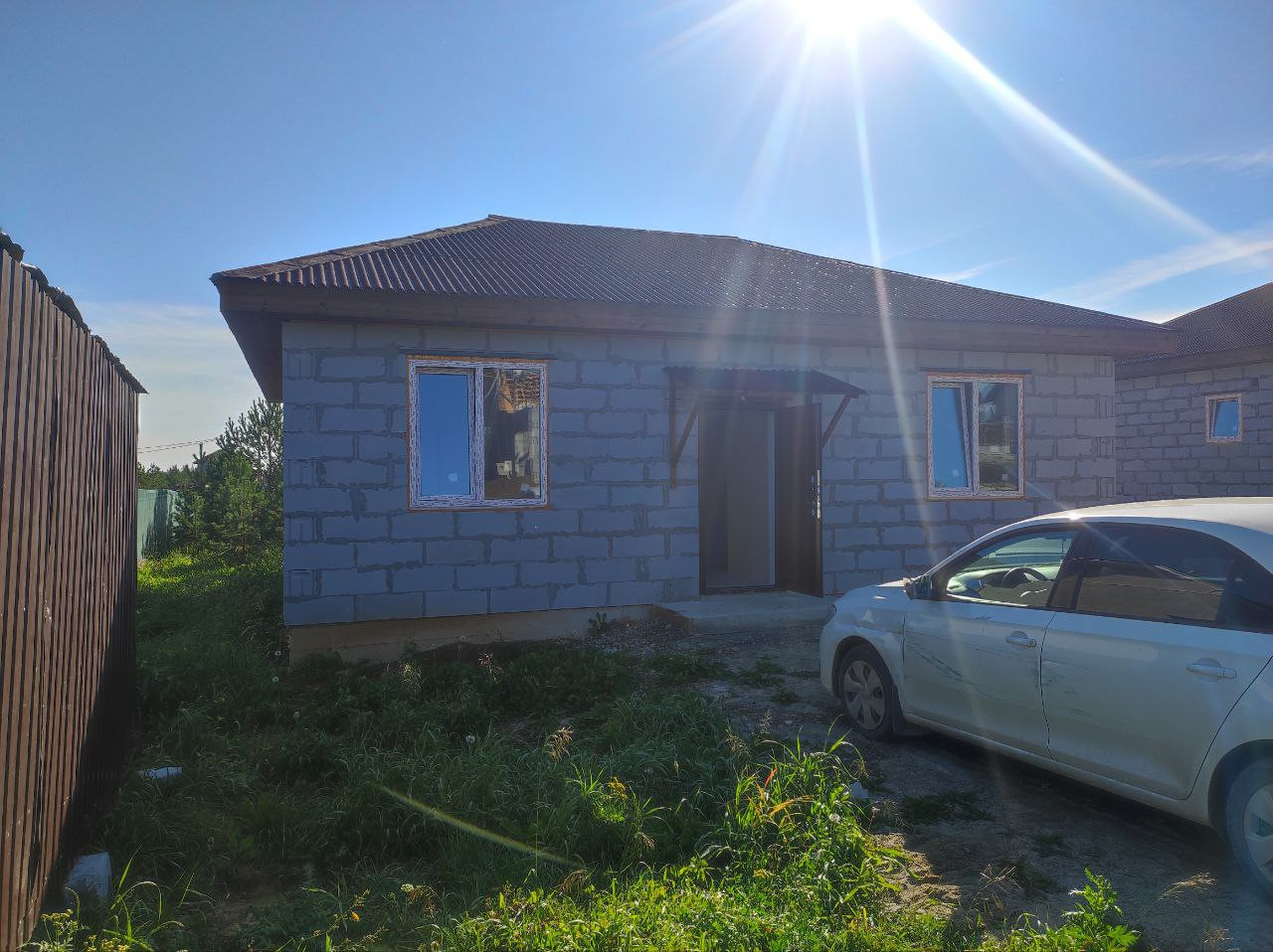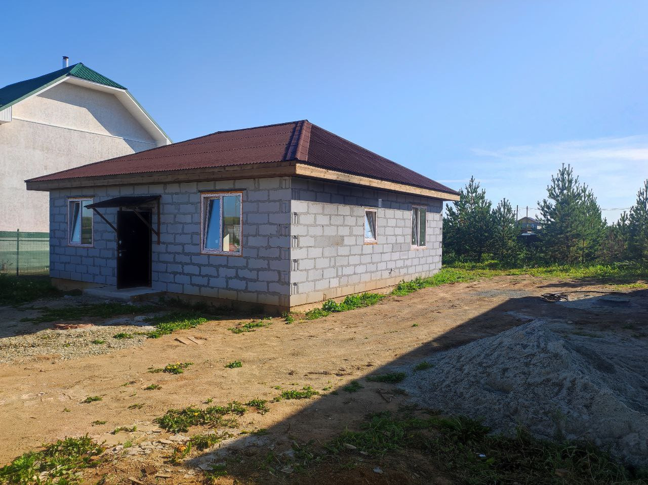 Дом (95м.кв.) с террасой, отделка под чистовую. Три комнаты (15,1+11,1+11,7 м. кв.) + кухня-гостиная (23,5 м.кв.). Все коммуникации подключены, вам остается наклеить обои, постелить пол и можно заезжать. Фундамент свайный -2,5 м. Своя скважина в доме, зимой не будет промерзать. Отопление электрическое, электричество подведено в дом (счетчик установлен), канализация – септик, кольца диаметр -1,5 м., глубина 3м. Сторона света – юго-восток, весь день в доме солнышко.
