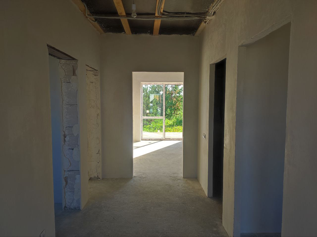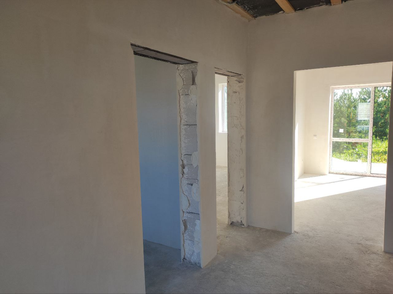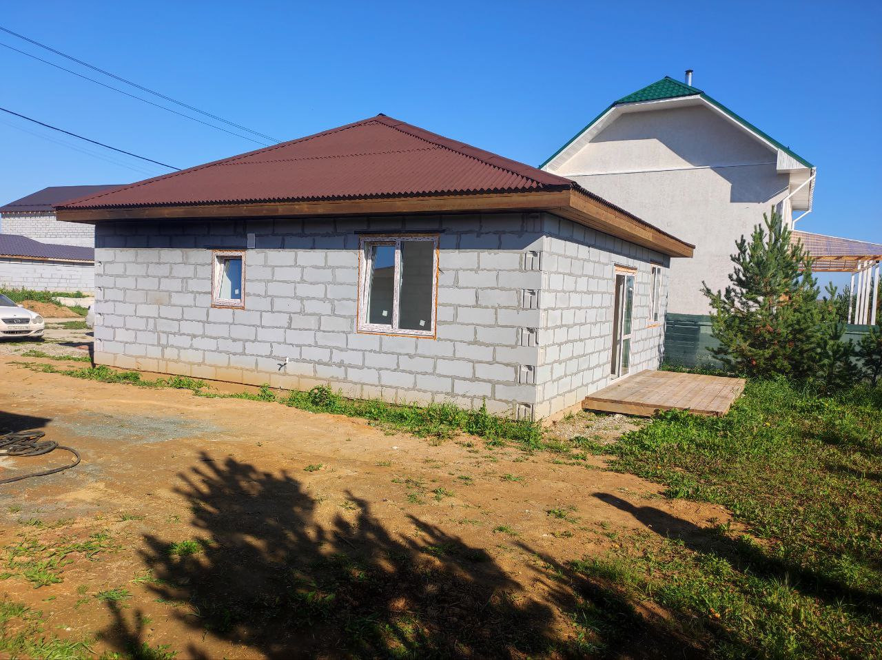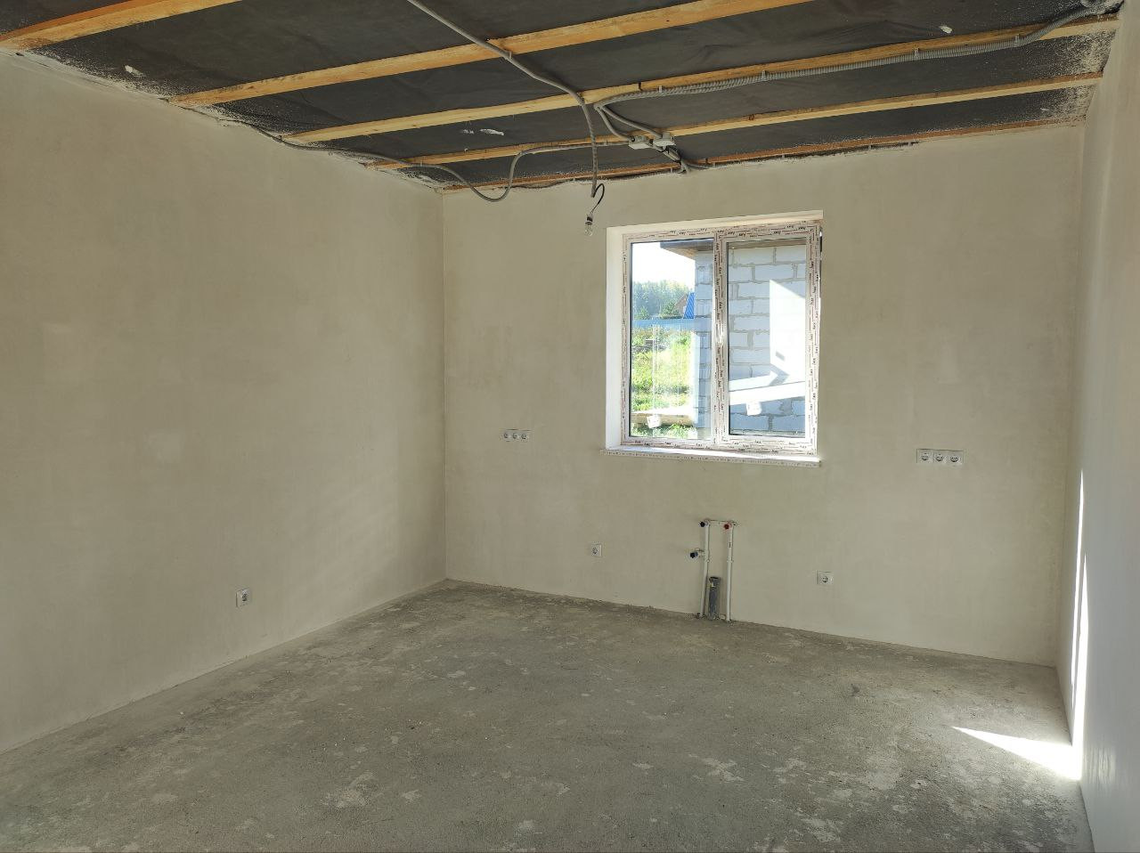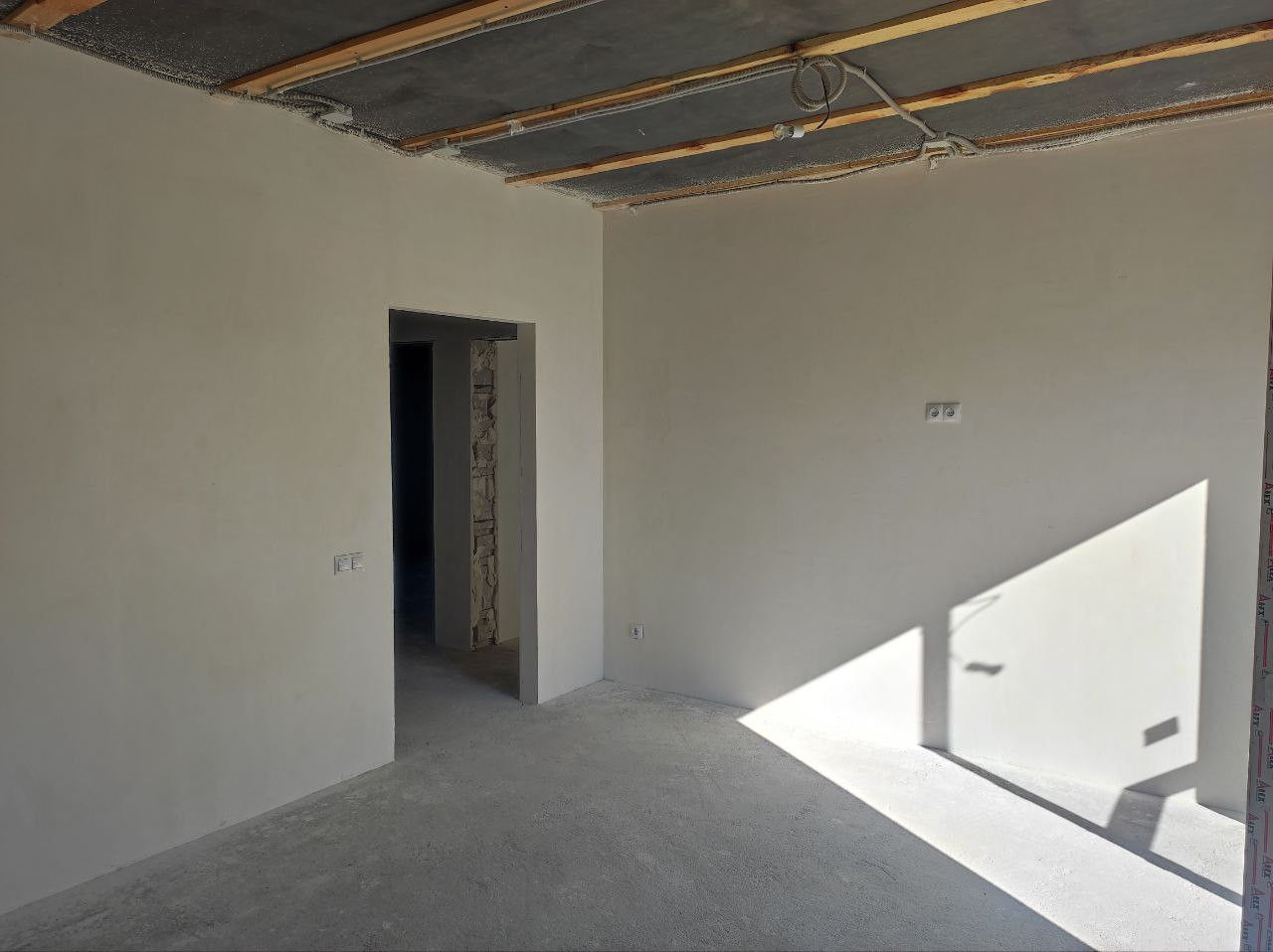 Дом (95м.кв.) с террасой, отделка под чистовую. Три комнаты (15,1+11,1+11,7 м. кв.) + кухня-гостиная (23,5 м.кв.). Все коммуникации подключены, вам остается наклеить обои, постелить пол и можно заезжать. Фундамент свайный -2,5 м. Своя скважина в доме, зимой не будет промерзать. Отопление электрическое, электричество подведено в дом (счетчик установлен), канализация – септик, кольца диаметр -1,5 м., глубина 3м. Сторона света – юго-восток, весь день в доме солнышко.