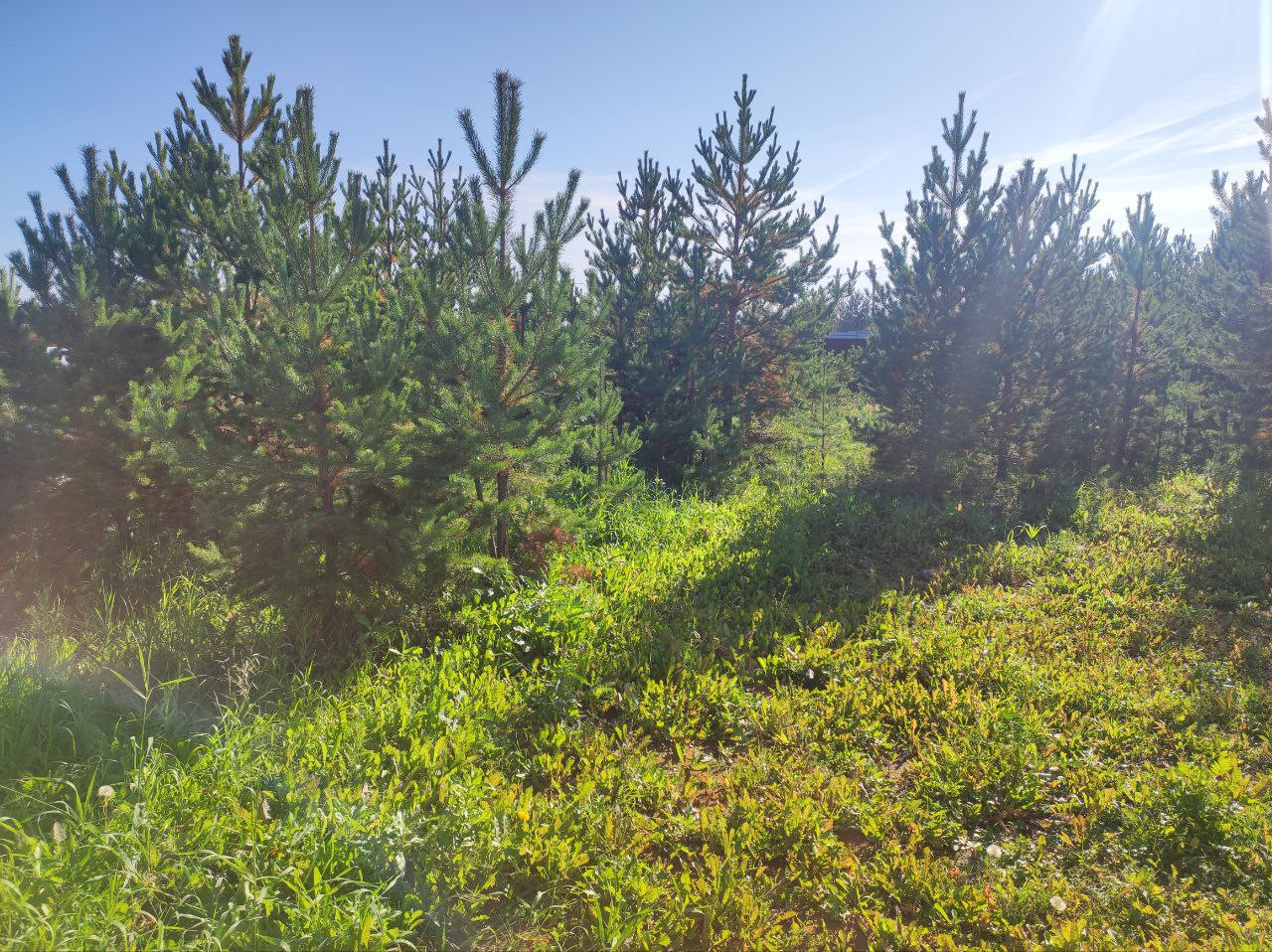 Земельный участок 8 соток правильной прямоугольной формы. Назначение земли – ИЖС. На участке большое количество деревьев, в основном –Ель. Участок находится на высоте холма, шикарный вид, никакой заболоченности.