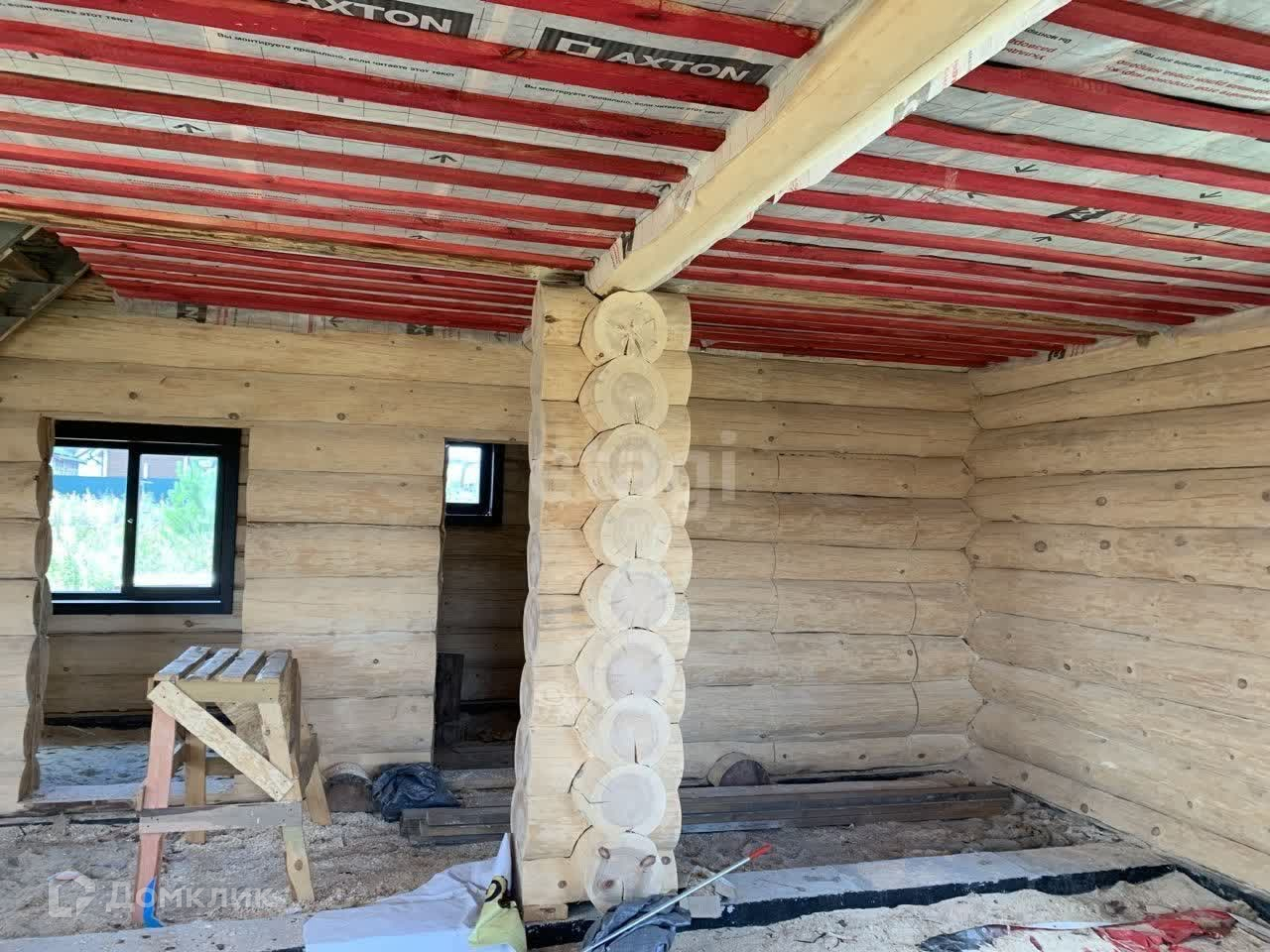 Стеклопакет деревянный ,профиль 70 , первый этаж усиленное стекло. Сделан черновой пол второго этажа.