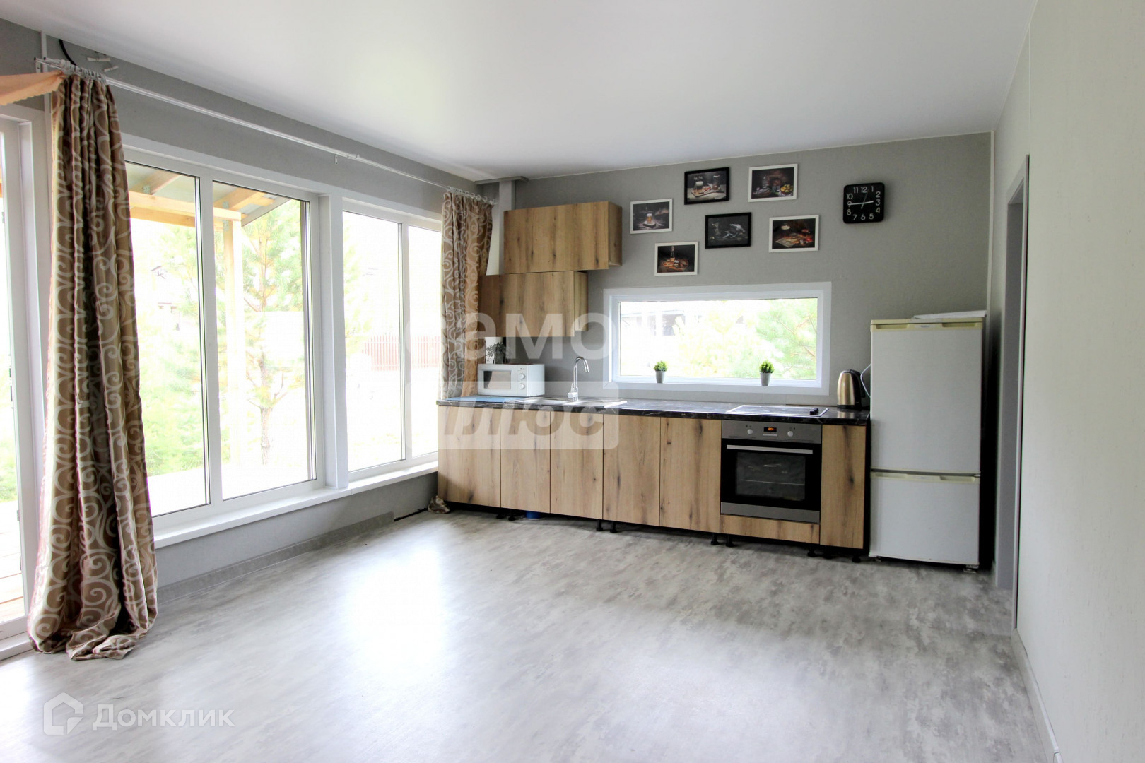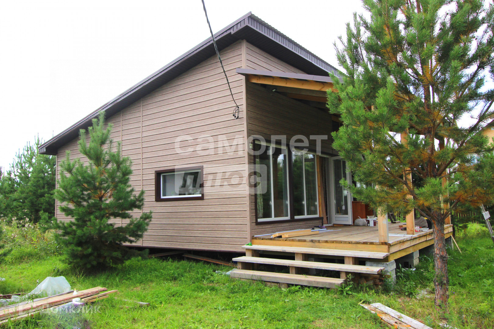Дом 84 м2 полностью готов к проживанию. С отделкой, мебелью и техникой внутри. Просторная кухня-гостинная и две спальни. Сан.узел в доме. Большая терасса.