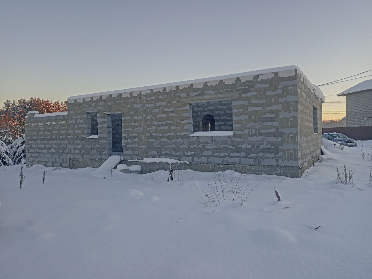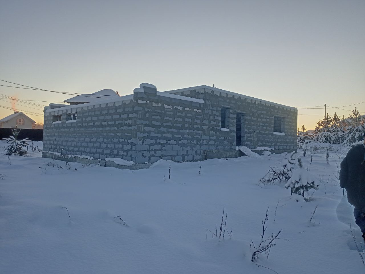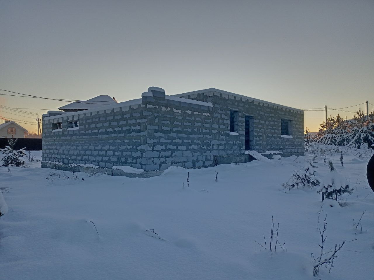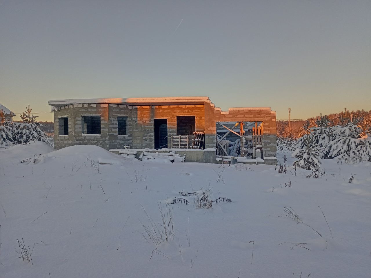 Продаю свой участок с  недостроенным домом  фундамент ленточный свайный строили для себя  , имеется разрешение на строительство  ,  частично лежат плиты перекрытия   ,  на участке пробурена скважина  , подключено электричество, вкопанные четыре кольца под септик,  Возможен торг реальному покупателю по всём вопросам лучше пишите