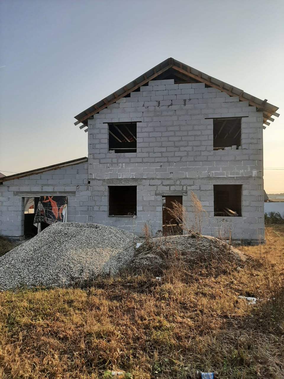 Продам участок. На участке не достроенный дом в 2 этожа, общей площадью 190м кв. Гараж 55м кв. Электричество. Выгребная яма. Газ перед участком.