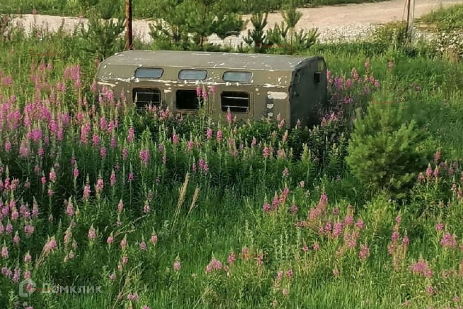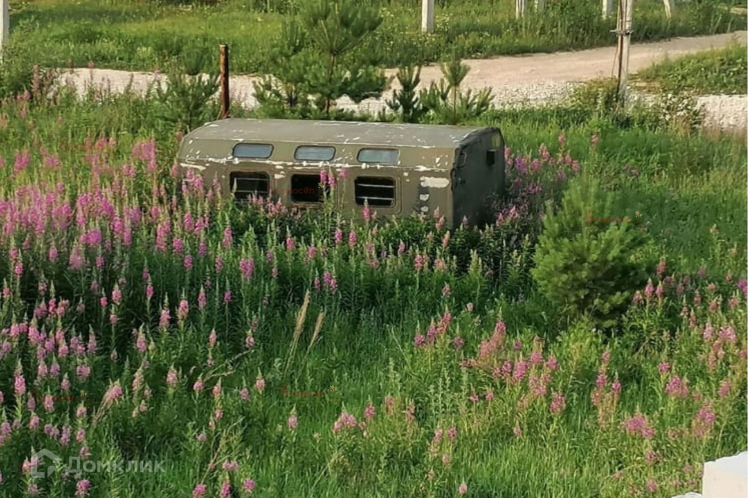 На участке есть дом не достроенный 11 на 12, фундамент-сваи. Есть гараж и вагончик.