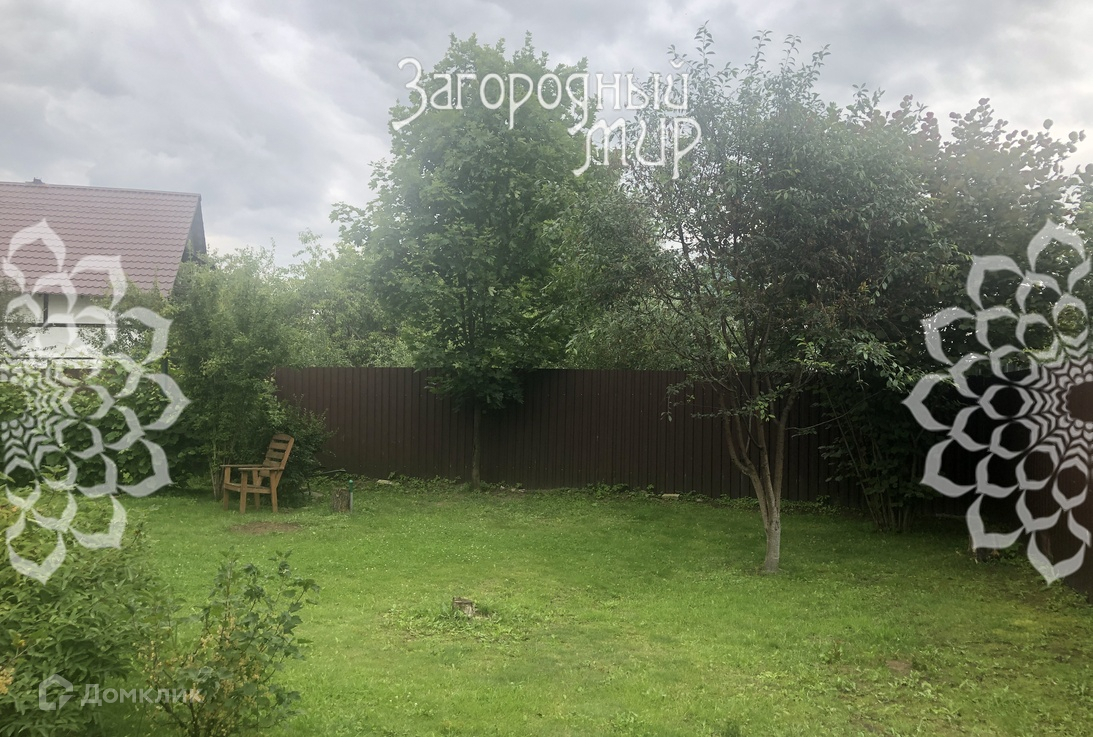 На участке 12 соток: баня с комнатой отдыха, душем, парилкой и верандой, наверху спальня; садовые деревья, цветы, газон и площадка для автомобиля. Участок огорожен забором из металлопрофиля.
