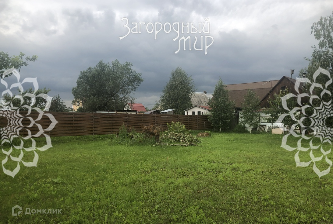 На участке 12 соток: баня с комнатой отдыха, душем, парилкой и верандой, наверху спальня; садовые деревья, цветы, газон и площадка для автомобиля. Участок огорожен забором из металлопрофиля.