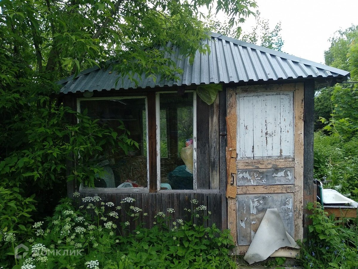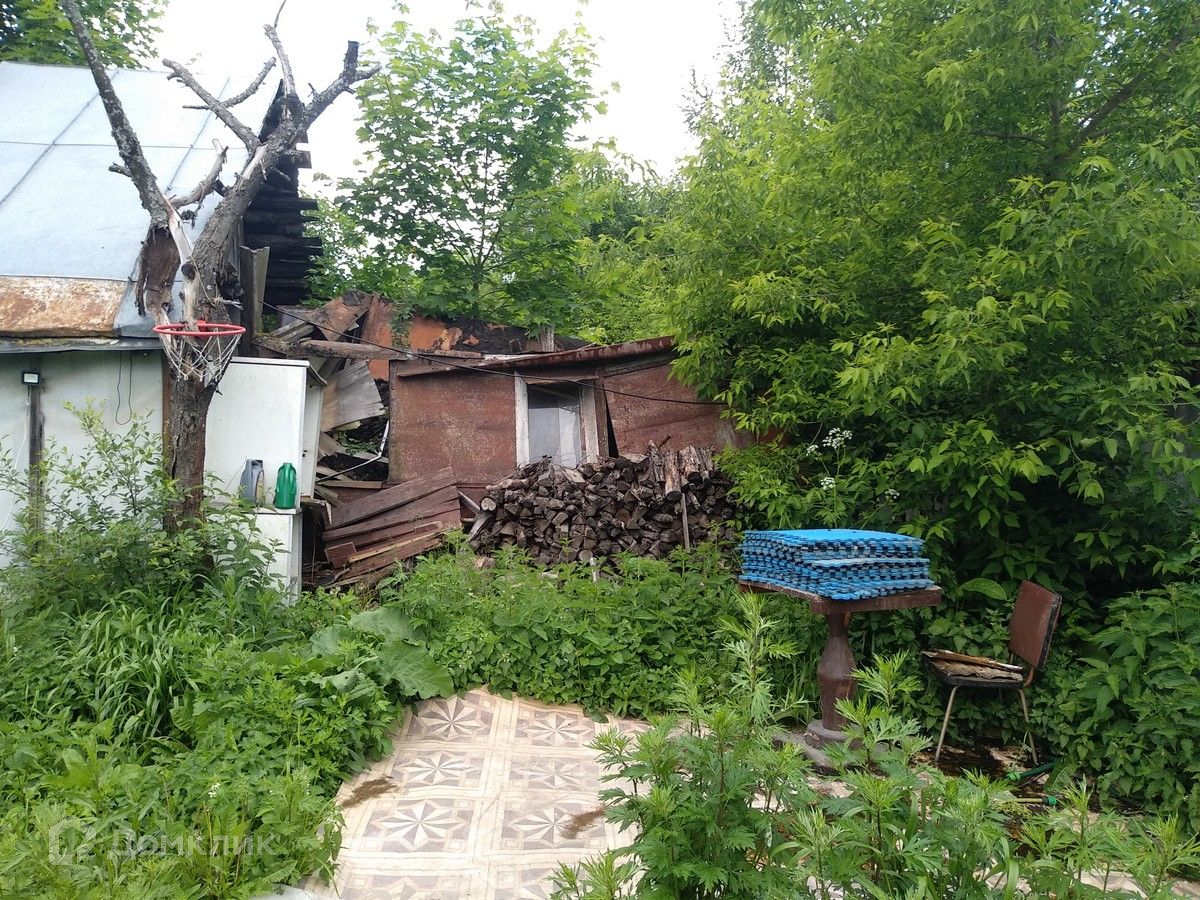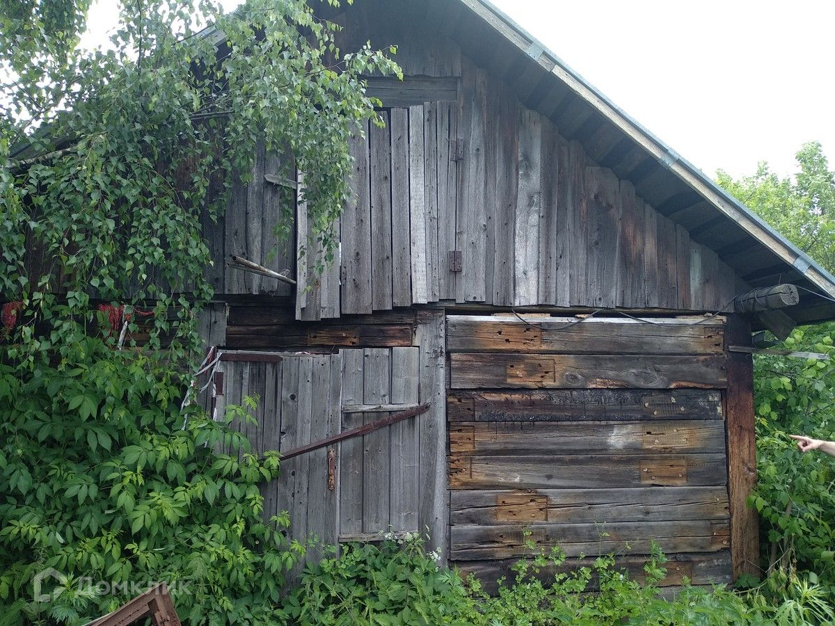 На участке находится бревенчатый дом 1956 (под снос), бытовые постройки, плодовые деревья и кусты.