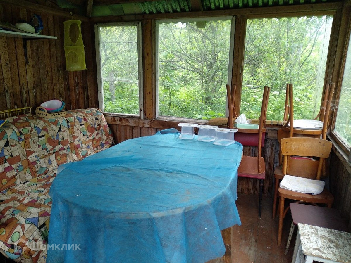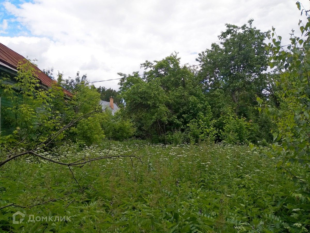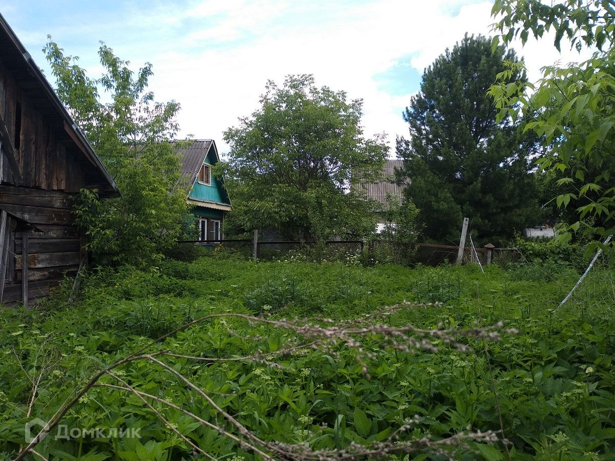 На участке находится бревенчатый дом 1956 (под снос), бытовые постройки, плодовые деревья и кусты.