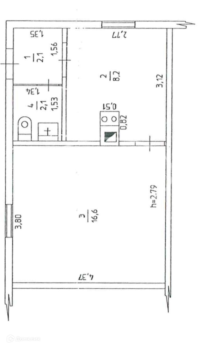 Высота потолков 2.79 м