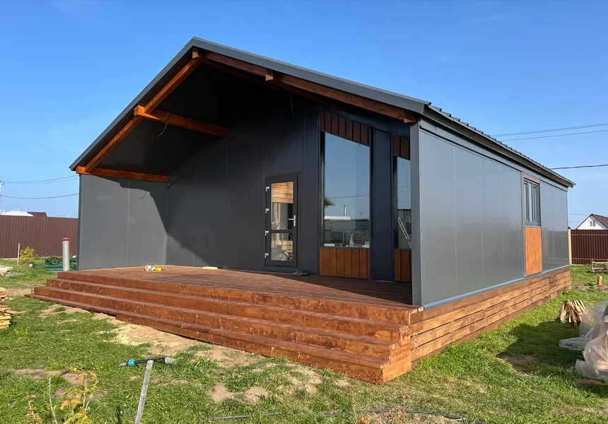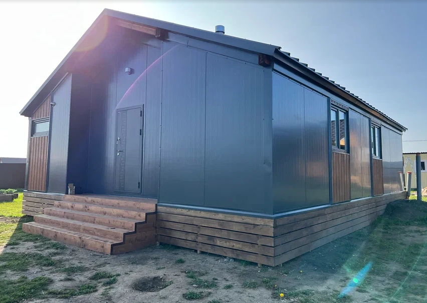 Особенность строительства дома из заводских панелей заключается в том, что они не требуют особого ухода. Они уже окрашены порошково-полимерной краской и покрыты составом, устойчивым к коррозии. В отличие от деревянных или окрашенных фасадов, которые требуют постоянного обслуживания, этот дом обязательно порадует своим невероятным внешним видом на протяжении долгого времени.