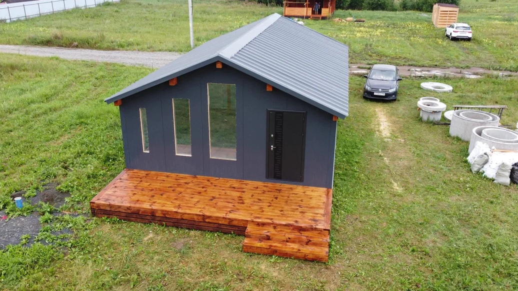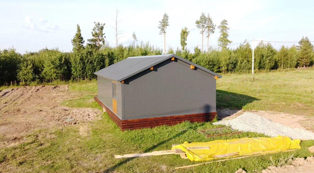 - Полы, стены, кровля - заводские панели с утеплением.